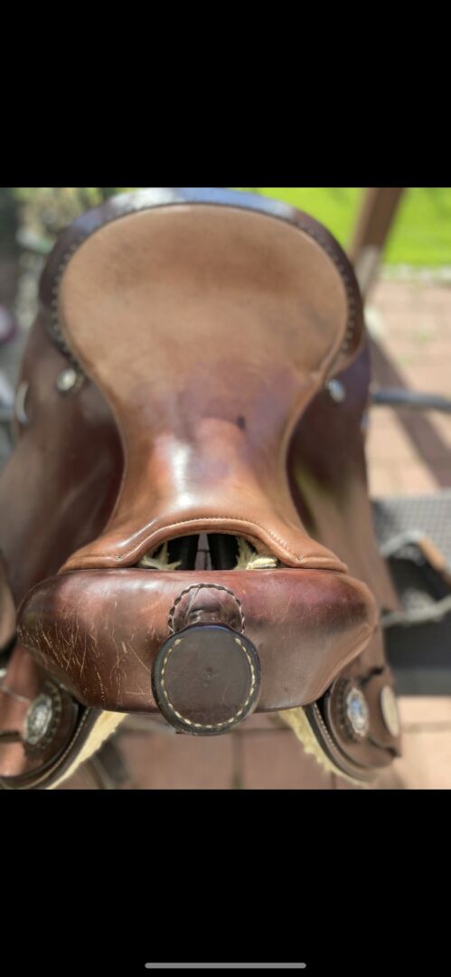 Western-sadel - Hej! Jag säljer min begagnade western-sadel som är i gott skick. Jag skulle ge 3 kuddar med den, samt ett matchande sadelöverdrag och en sadelgjord. Om du är intresserad är det bara att kontakta mig :) Priset är förhandlingsbart!