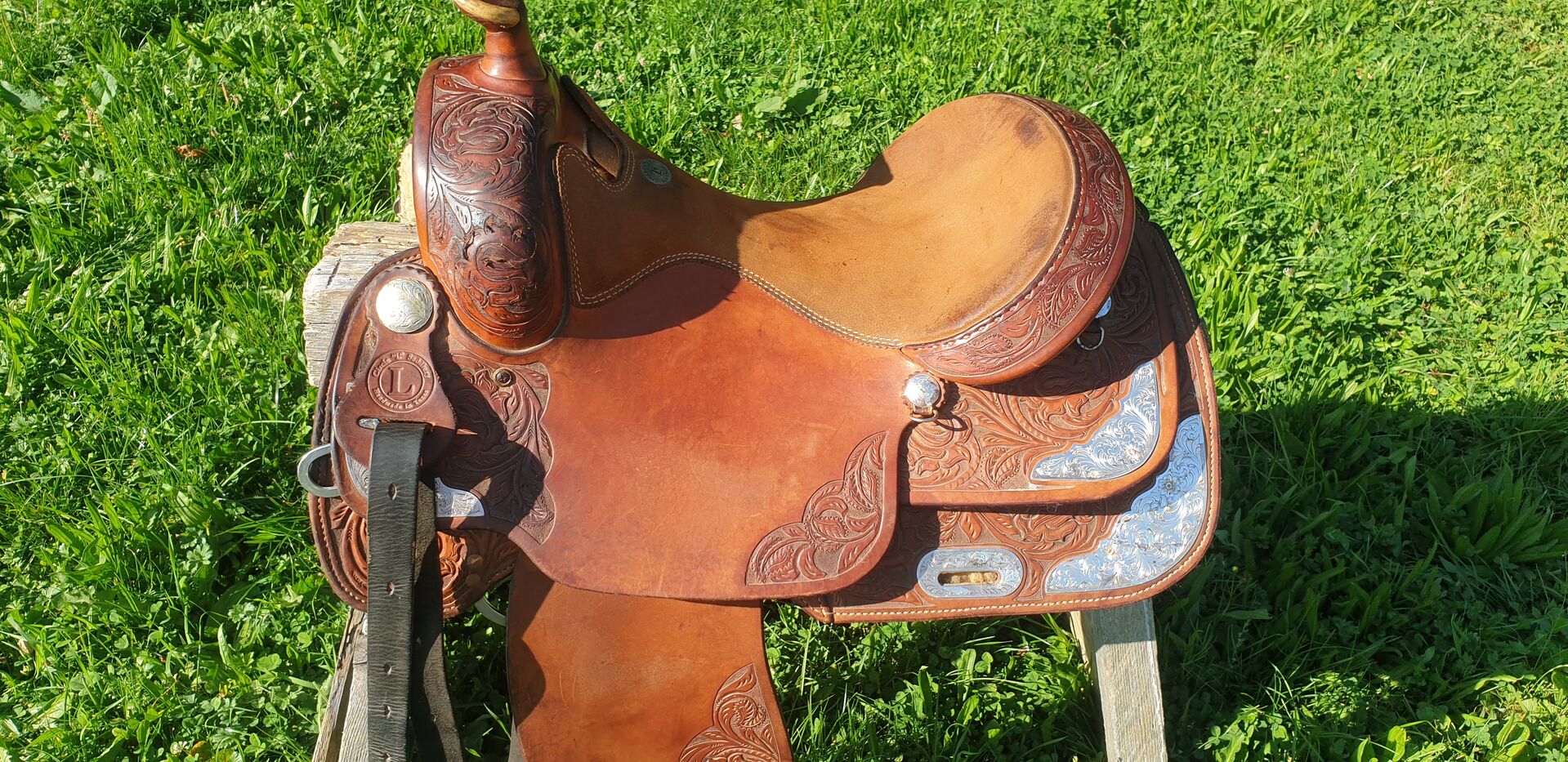 Western-sadel - Mycket snyggt gjord brun western sadel ... för breda hästar ... Inkl. sadelduk ... Jag hade den med mitt varmblodiga sto för trailridning ...