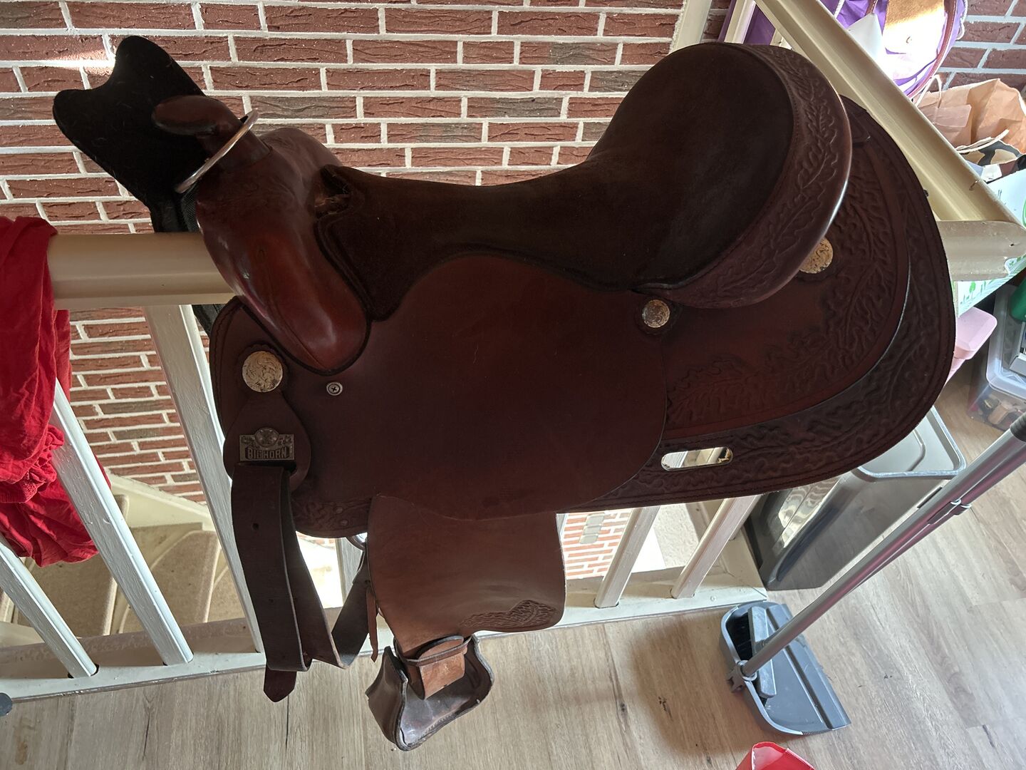 Western-sadel - Hej, jag säljer min westernsadel, Jag säljer min western sadel. Tyvärr låg den inte så bra på min ponny och min ponny går i pension tidigt. Så tyvärr behövs inte denna sadel längre.