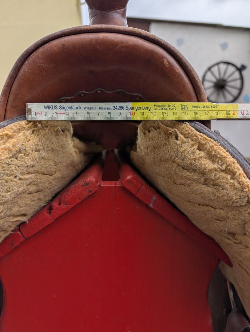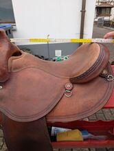 Sadeln säljs för att jag helt enkelt inte är en westernryttare och fick sadeln med hästen. Den satt på en 170cm Westphalian med en väldigt hög gump.
