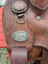 Western-sadel - Jag erbjuder här en begagnad westernsadel i gott skick, den har blivit helt rengjord, oljad och smord förra månaden. Vänligen se bilderna för dimensionerna.