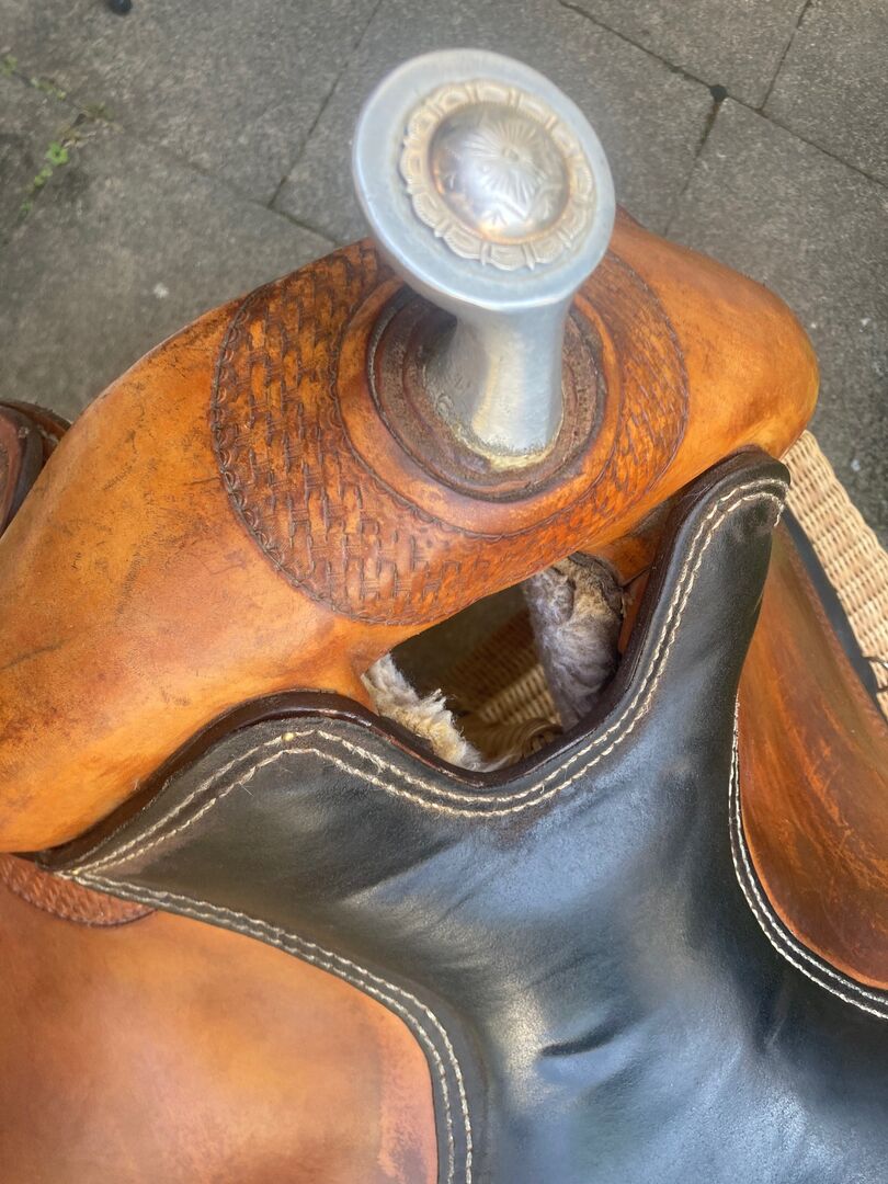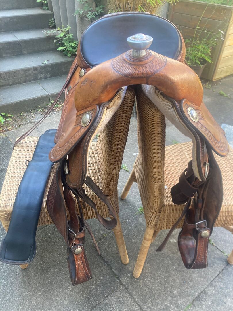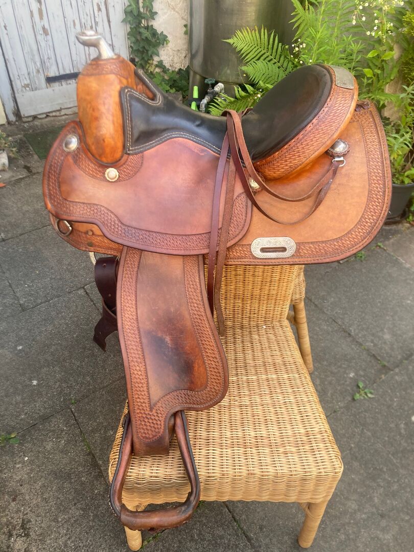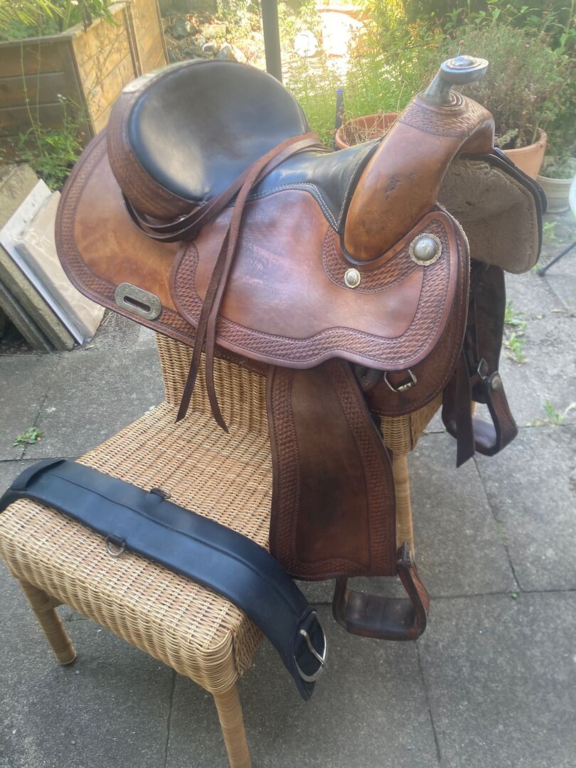 Western-sadel - Super bekväm western sadel till salu Western sadel, tecken på användning närvarande, mycket bekvämt säte från Continental Saddlery Co, totalt sett mycket bra skick, mätningar tillgängliga på bilderna. Sadeln är en högkvalitativ bit med märkesbeslag (Belvins spännen).