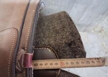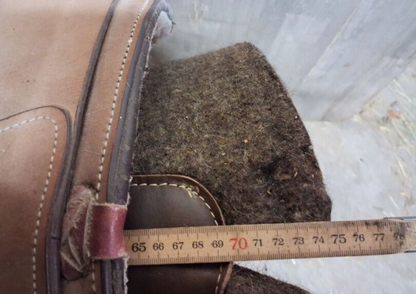 Se bilder för längd. Passar bra med byxor storlek 42+ skulle säkert också vara en intressant sadel för män. Sadeln har en vikt på ca. 15kg Filtdynan ingår i leveransen. Girths kan läggas till mot en extra kostnad.