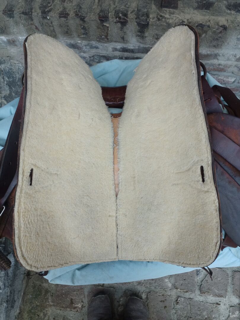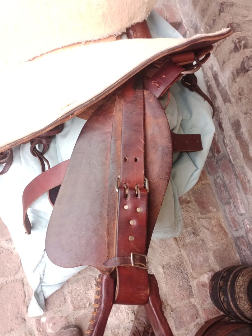 Den är ganska robust, tillsammans med stänkskärmarna väger den 11 kg och är därför i det mellersta viktintervallet. Den har inte ett extra vadderat gel-säte, men jag tycker fortfarande att det är väldigt bekvämt för terrängridning. Tack vare de många läderremmarna (som kan bytas ut vid behov) kan mycket fästas på sadeln även utan genomföringar. Variabel sadelgjord möjlig, en bröstplatta kan fästas på ringarna på den främre sadelgjorden. Fendrarna är 42cm långa och därför också lämpliga för kortare ben (Jag är 1.64m) ;) Alla mått finns på en av bilderna, men om det behövs kommer jag gärna att mäta ytterligare eller skicka fler bilder :)