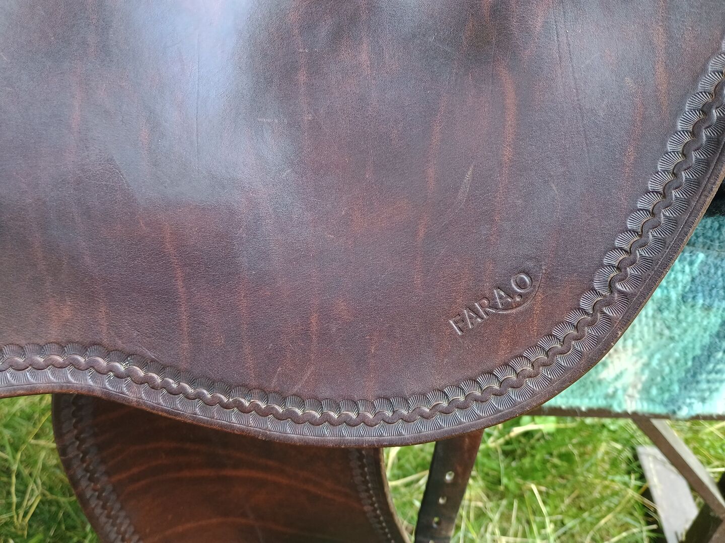 Western sadel Algoma från Fara.O - Jag säljer min Fara.O western sadel. Sadeln är mycket lätt ca. 7kg och är lämplig för "bredare" hästar med kort rygg. Sadeln är i gott skick med lätta slitageskador, har en flexibel läderbygel och är utrustad med trepunktsgördel. Det är möjligt att lägga till ytterligare stoppning. Betalning via banköverföring eller kontant vid upphämtning. Frakt endast möjlig inom Tyskland efter överenskommelse om köparen betalar hela fraktkostnaden. Ingen retur