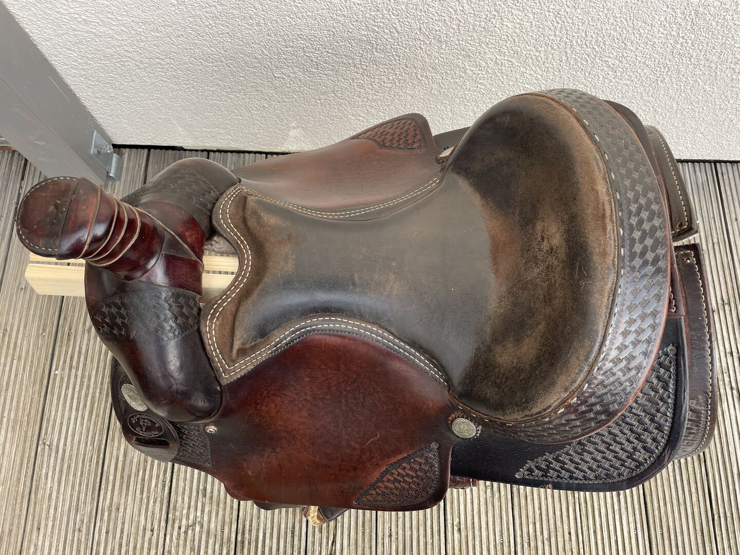 Western-sadel / amerikansk arbetssadel - Jag säljer en välbevarad och högkvalitativ fungerande sadel från USA. Den var handgjord. Den behöver bara lite olja... Se bilderna för mått.