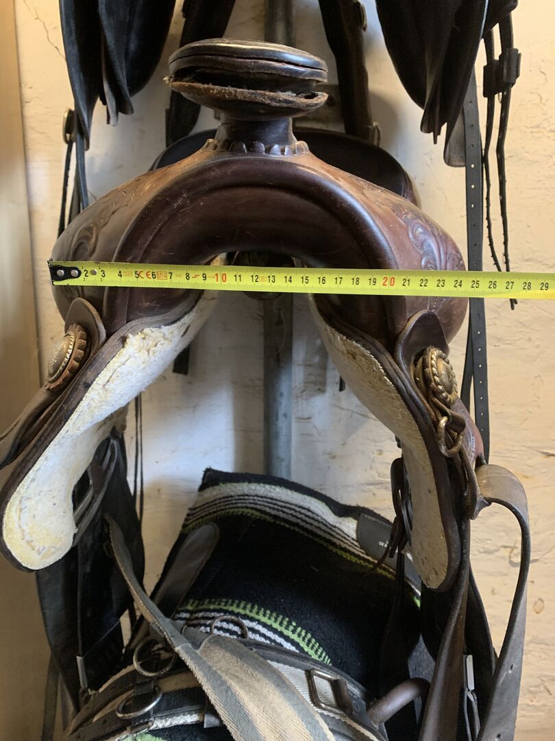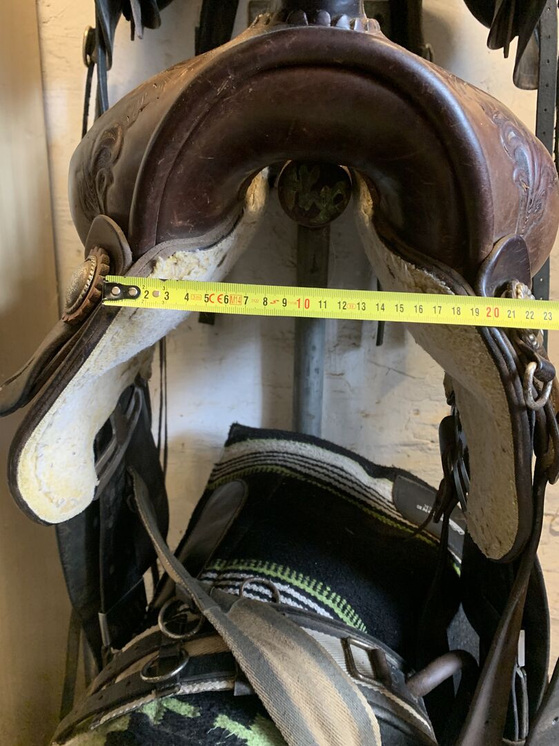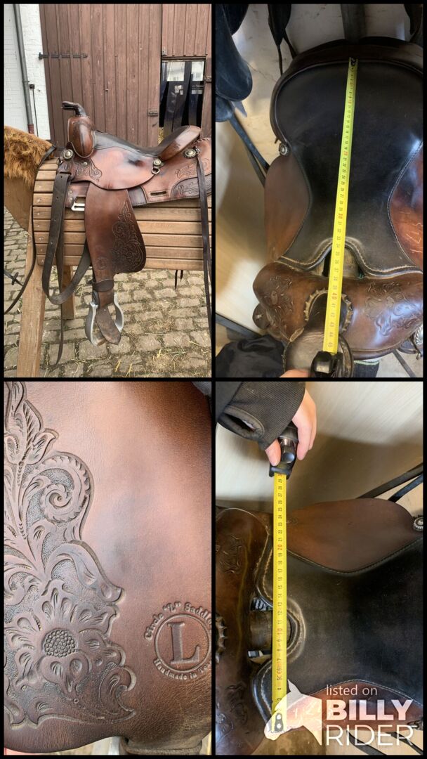 Western sadel Circle L. - Vacker västernsadel från Circle L. Handgjord i Texas. Tyvärr är sömmen i lädret på hornet öppen, så den skulle behöva sys om eller limmas. Vänligen kontakta mig om du har några frågor.