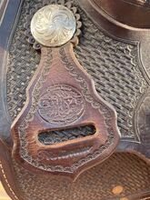 Western-sadel Cully's Saddle & More Triple W Platinum + gratis schabrack - Med tungt hjärta säljer jag min westernsadel från Cully's Saddle & More, en Triple W Platinum (träd 305 eller 303 - 8660 - 02) i mörkbrunt och i gott skick. Den satt på en Tinker med hög mankhöjd. Med stigbyglar. 16 tums sitsstorlek.