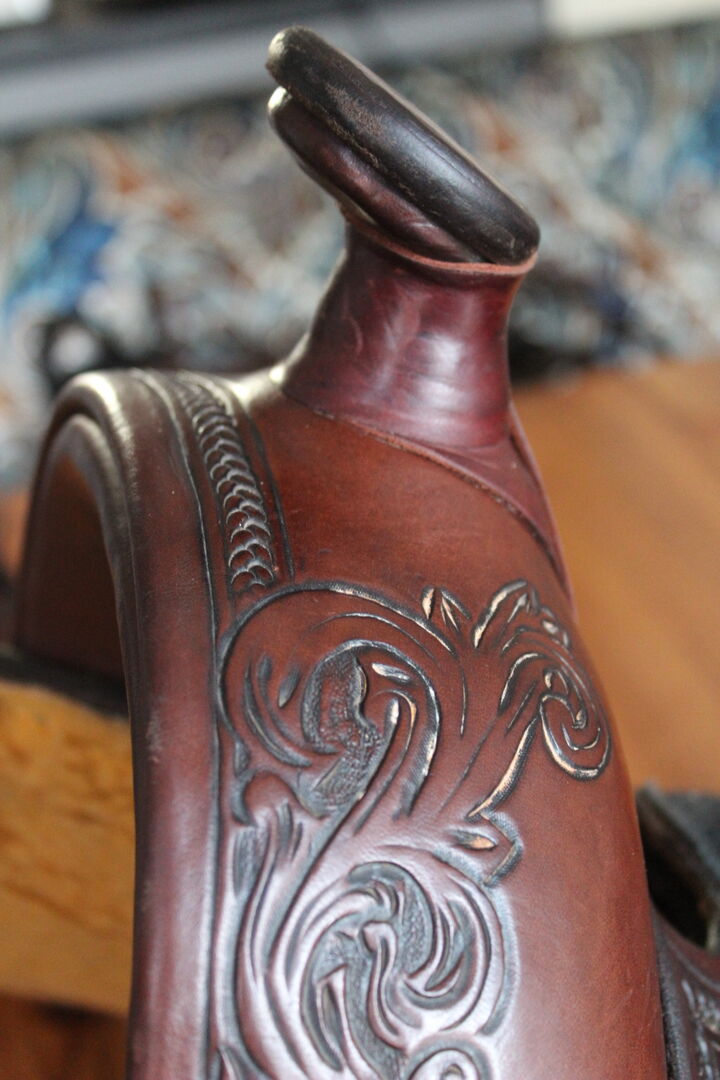 Riggning fram: C-Ring Inskirt på 7/8 position Fenderlängd: M Horn: Horn av läder Stigbyglar: Stigbyglar av råhud Vikt: ca 11,5 kg Kjollängd/djup: ca 60 cm / ca 27 cm