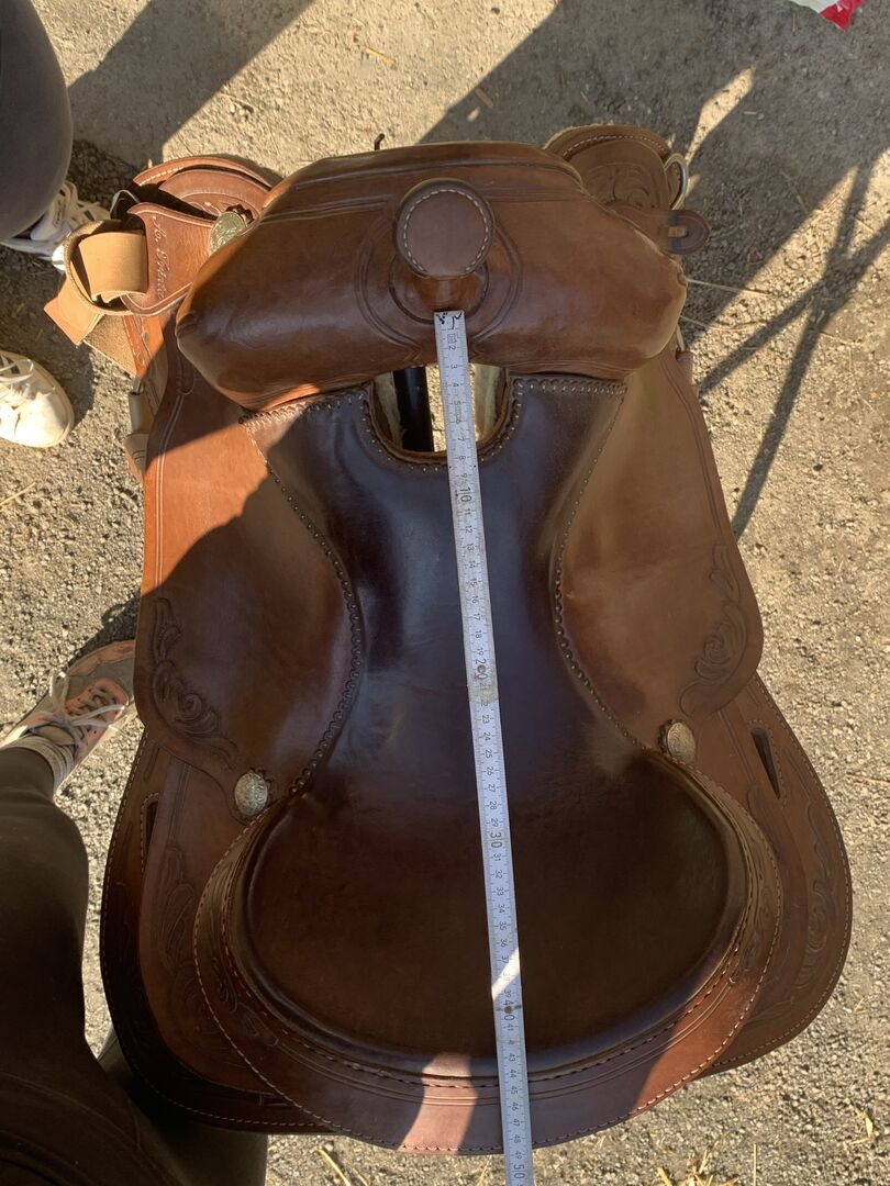 Western-sadel för hästar med hög skänkel - - Den är lämplig för hästar med hög skänkel. - Har knappt några tecken på användning - Inkl. sadelunderlag, utan sadelgjord