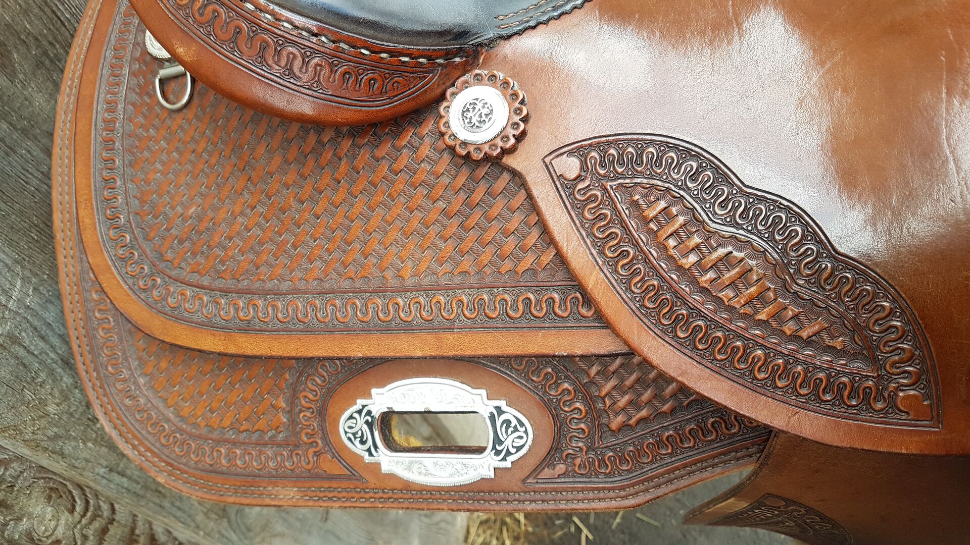 Western-sadel från Deuber & Partner, Double C - Säljer här en begagnad western-sadel, lämplig för bredare hästar med medelhög svank och liten skänkel. Plats: 16 Kammaren: 3 Träd: B224 54 Den visar normala tecken på användning och har alltid förvarats torrt med ett skyddande skydd. Detta kan köpas mot en extra avgift. Sadeln kan tas med för montering mot en deposition av köpesumman. Matchande tillbehör som t.ex. tygel, grimma, lammskinn, westernkuddar kan köpas för en extra kostnad. Det är möjligt att skicka via DHL. Privat försäljning utan retur och garanti.