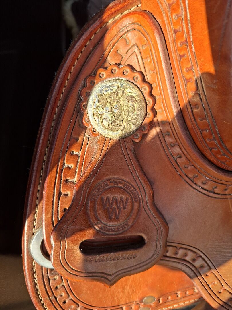 Western-sadel från Triple W - Jag erbjuder min western sadel från Triple W här. Måtten kan ses på bilderna. Sadeln är från 2008 och har tecken på användning, men kan säkert renoveras. I övrigt är den fullt funktionell. Hör gärna av er om ni har några frågor.