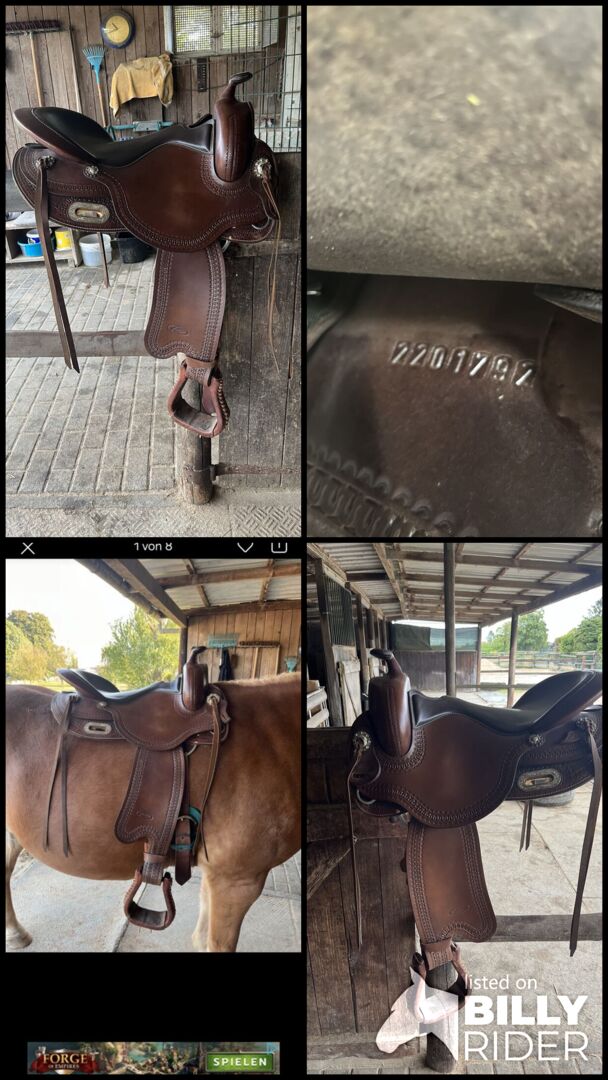 Western-sadel Freemax - Säljer min mycket välbevarade trädlösa Freemax western sadel. Jag köpte den begagnad själv men tyvärr är den för lång för min häst . buffelläder . sits 16 tum . Längd 61cm