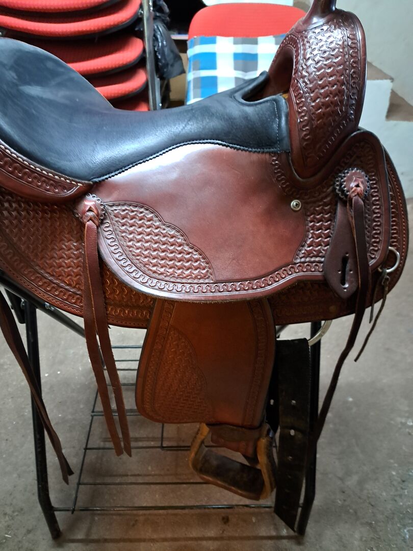 Western sadel med kvarvarande garanti deuber och partner kort - Hej, jag erbjuder en fantastisk kort sadel med återstående garanti från Deuber och Partner. Den levereras med en återstående garanti och sadelunderlag. Sadeln är idealisk för hästar med korta ryggar. Sadeln har knappast använts och är därför i gott skick.