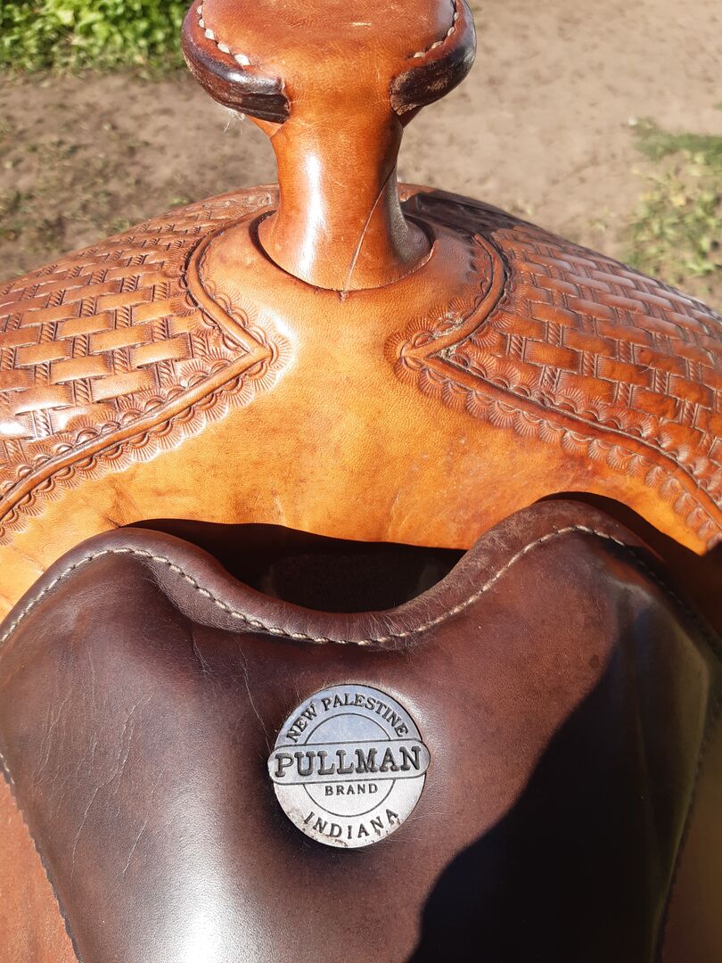 Western-sadel Pullman - Tip top bevarad västerländsk sadel Pullman, New Palestine Brand Indiana. Sits 16' kammare storlek Semi Quater. En tränares sadel...perfekt passform...och bästa möjliga hjälp... Min dröm sadel...men tyvärr häst dog. Till salu inklusive: 1 Profesional Choice Pad och 1 Correction Pad. 2 sadelgjordar i mohair Att spendera pengar är värt det...som Mercedes..bland sadlar....man letar aldrig efter en annan! Sadeln är i Spanien för tillfället & så är jag.