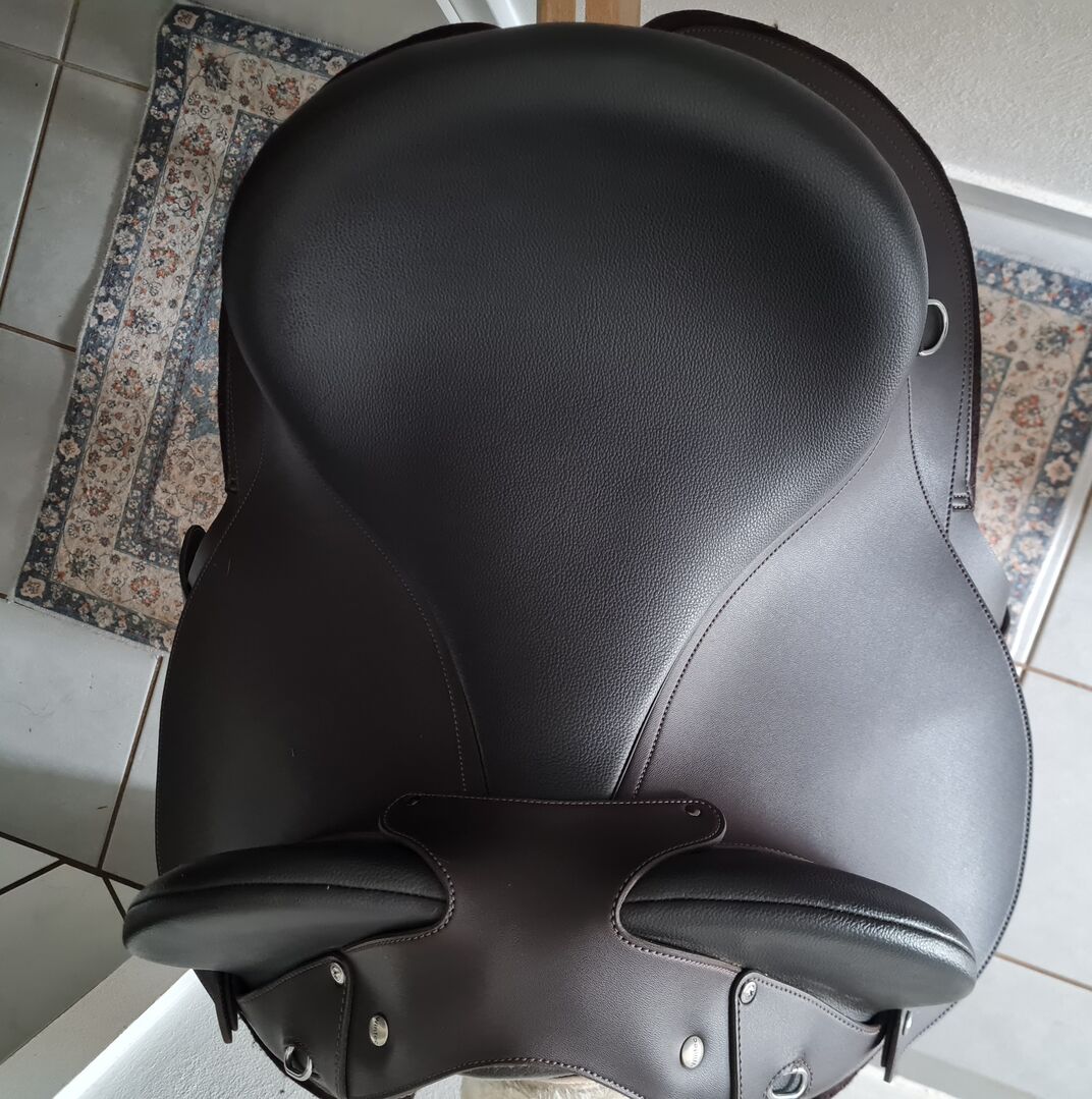 Western sadel / stock sadel / working equitation / travelling sadel - Wintec Half Breed-sadel, hybrid av western- och stock-sadel, även kallad polo cross-sadel, extremt bekväm för ryttare och häst, individuellt justerbar i bredd och svank direkt på plats med hjälp av utbytbara kotlettplattor (från smal till extra bred) och inlägg för lämplig stoppning. Den sitter underbart nära hästen och är därför lämplig för gymnastik- eller working equitation-discipliner såväl som för avslappnad terrängridning och särskilt för osäkra ryttare som föredrar säkerhet och bra stöd i sadeln. Denna sadel importerades direkt från Australien 2025, finns för närvarande ännu inte tillgänglig i Tyskland, säljs endast eftersom den tyvärr inte passar min ridbar. Sadelstorlek M (motsvarar 16" westernsadel eller 17" dressyrsadel), normal standardskärmlängd. Lämplig för smala till starka hästar, inte för extra breda hästar med mycket runda ryggar. Utmärkt för korta hästar. För närvarande försedd med vit (bred) kotlettplatta, men kan bytas ut vid behov. Inga skador, har inte varit på hästen 5 gånger, lätt och nästan oförstörbar sadelgjord om den används på rätt sätt. Total längd: 58 cm. Utmärkt kvalitet och utförande och mycket lättare än en vanlig westernsadel. Passning och justering på plats naturligtvis möjligt. För omedelbart köp 1300€. Vänligen avstå från begäran om betalning med check.