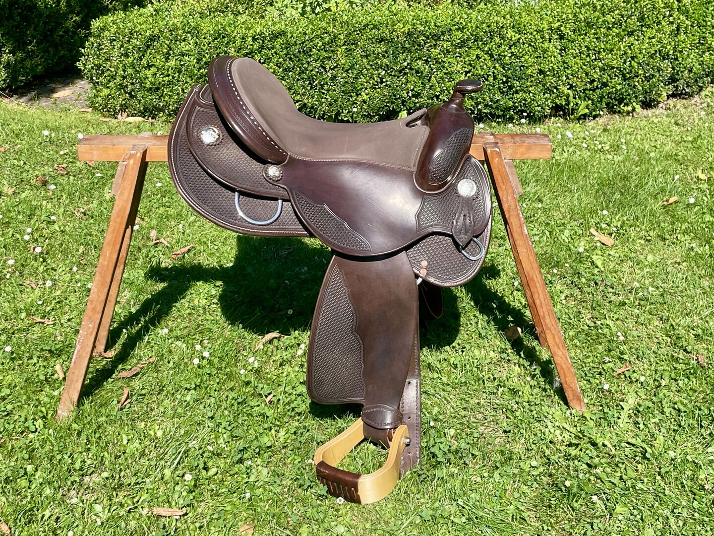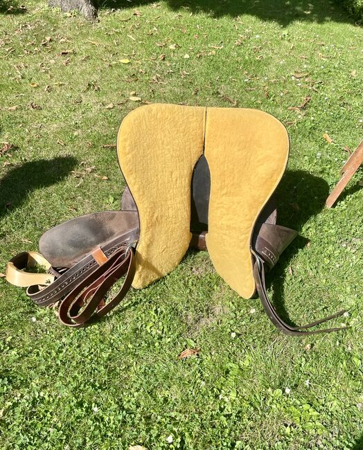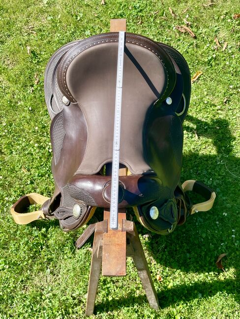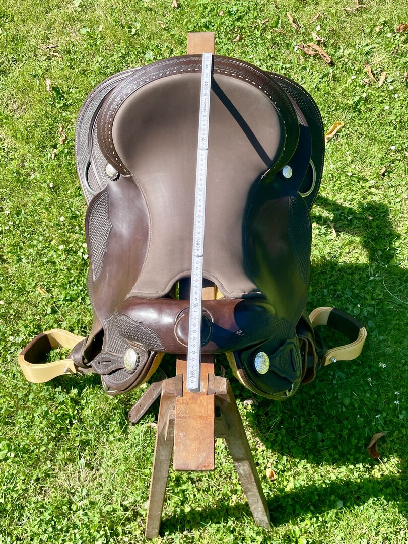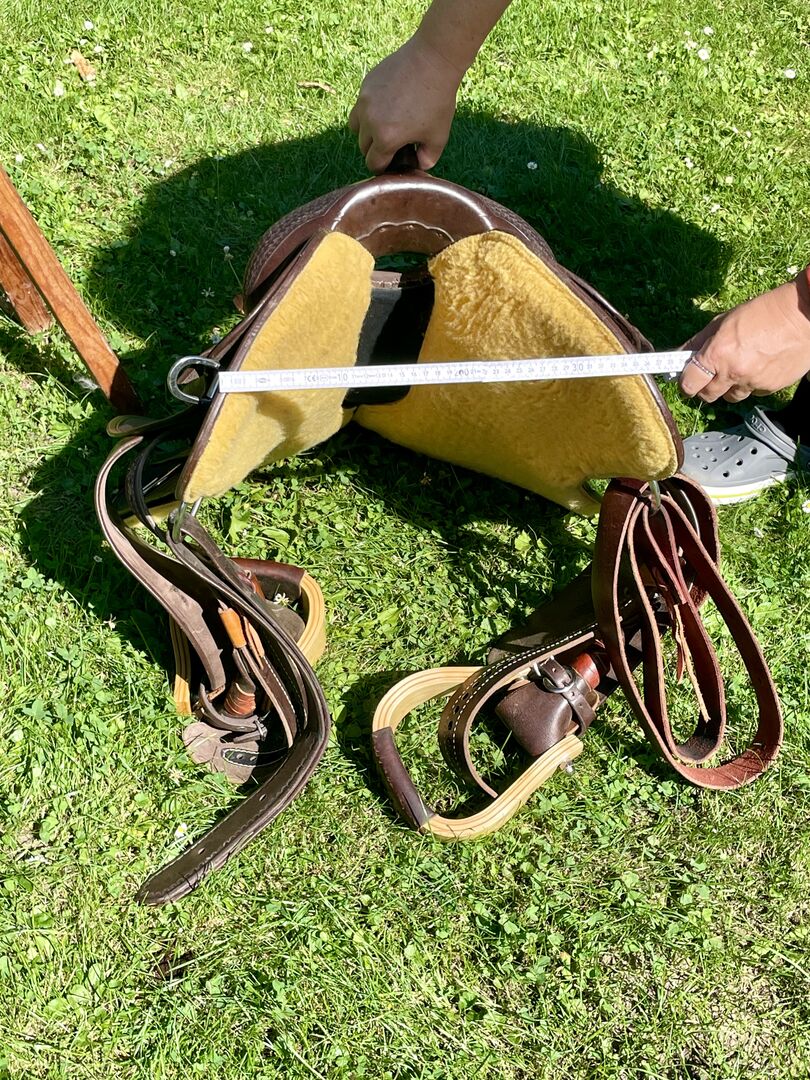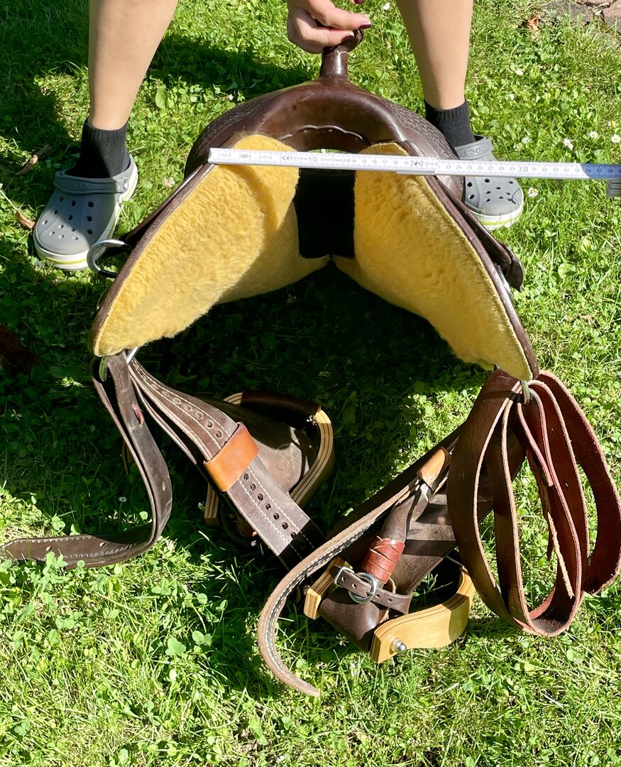 Western-sadel Triple W Platinum Small Butterfly - Till salu en begagnad western sadel i mycket gott skick, märke Triple W Platinum Small Butterfly. Färg Mörk olja Träd 8660-02 Kammerbredd 2 Innehåller utåtvända fendrar Sadeln är kort och smal. Detta är en privat försäljning, ingen garanti, inga returer.