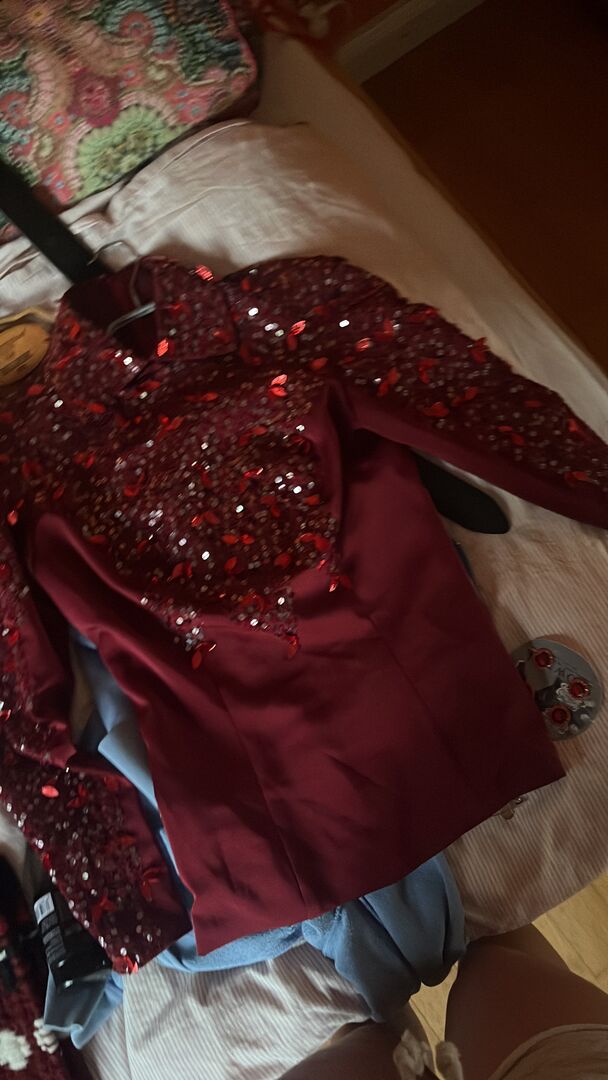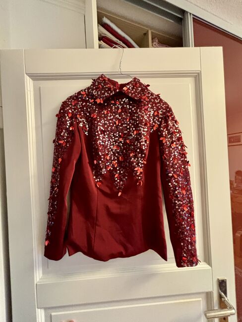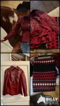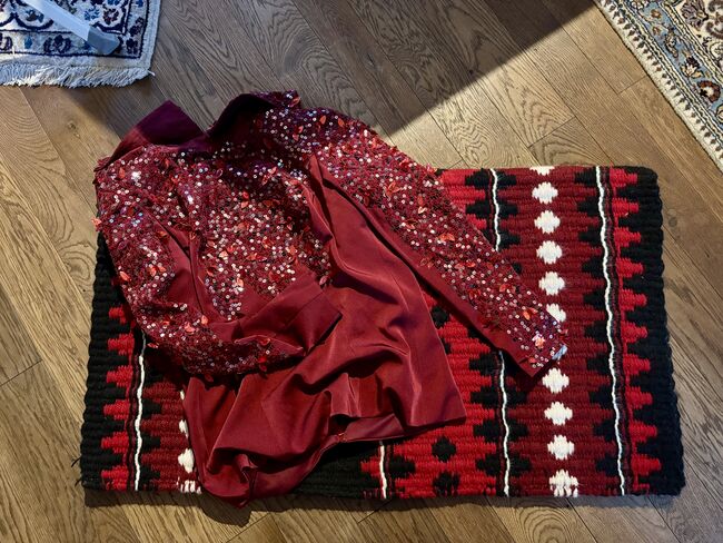 Western show outfit - Jag säljer min röda showtack show top inklusive matchande filt i storlek XS. Setet har endast burits en gång och är därför i nyskick. Ursprungligt pris: 350€.