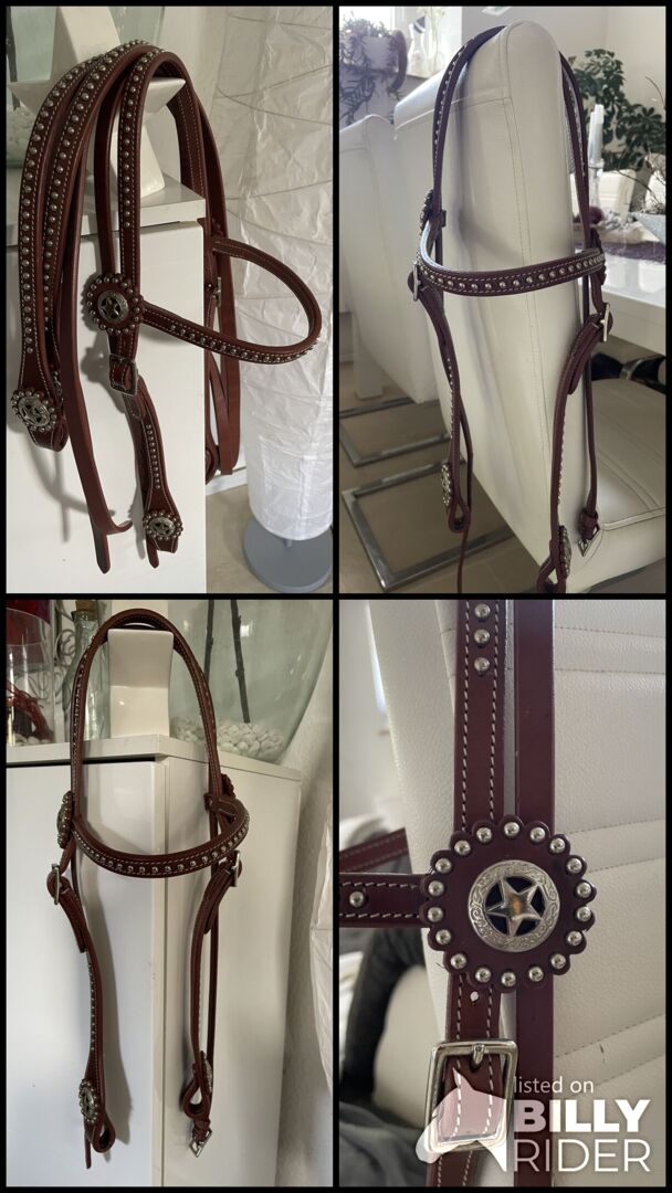 Western Snaffle med tyglar Ny* - Ett "nytt" fantastiskt vackert huvudstall med matchande tyglar i en fantastisk finish och tillverkat av utsökt läder.