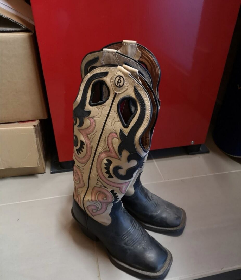 Säljer mycket sällan använda tony lama westernstövlar med högt skaft. Storlek 38,5, som ny, frakt möjlig, paypal också möjligt.