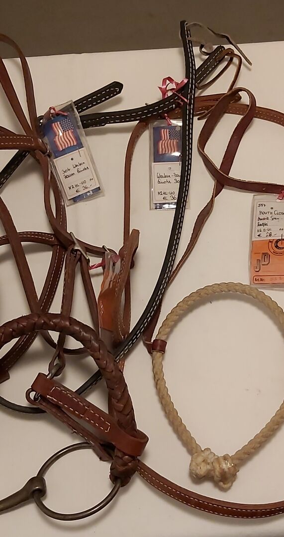 Western träns/verktyg - Bridle halter för. Westernridning i olika modeller tillverkade av läder och rep...... Reducerad än vad som visas på bilderna! Pris på förfrågan om intresse finns!