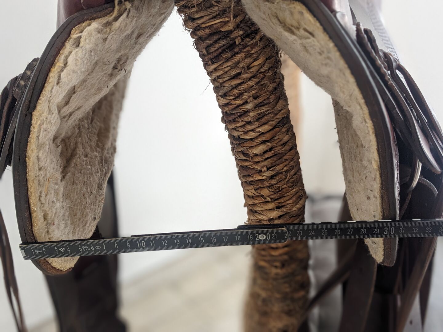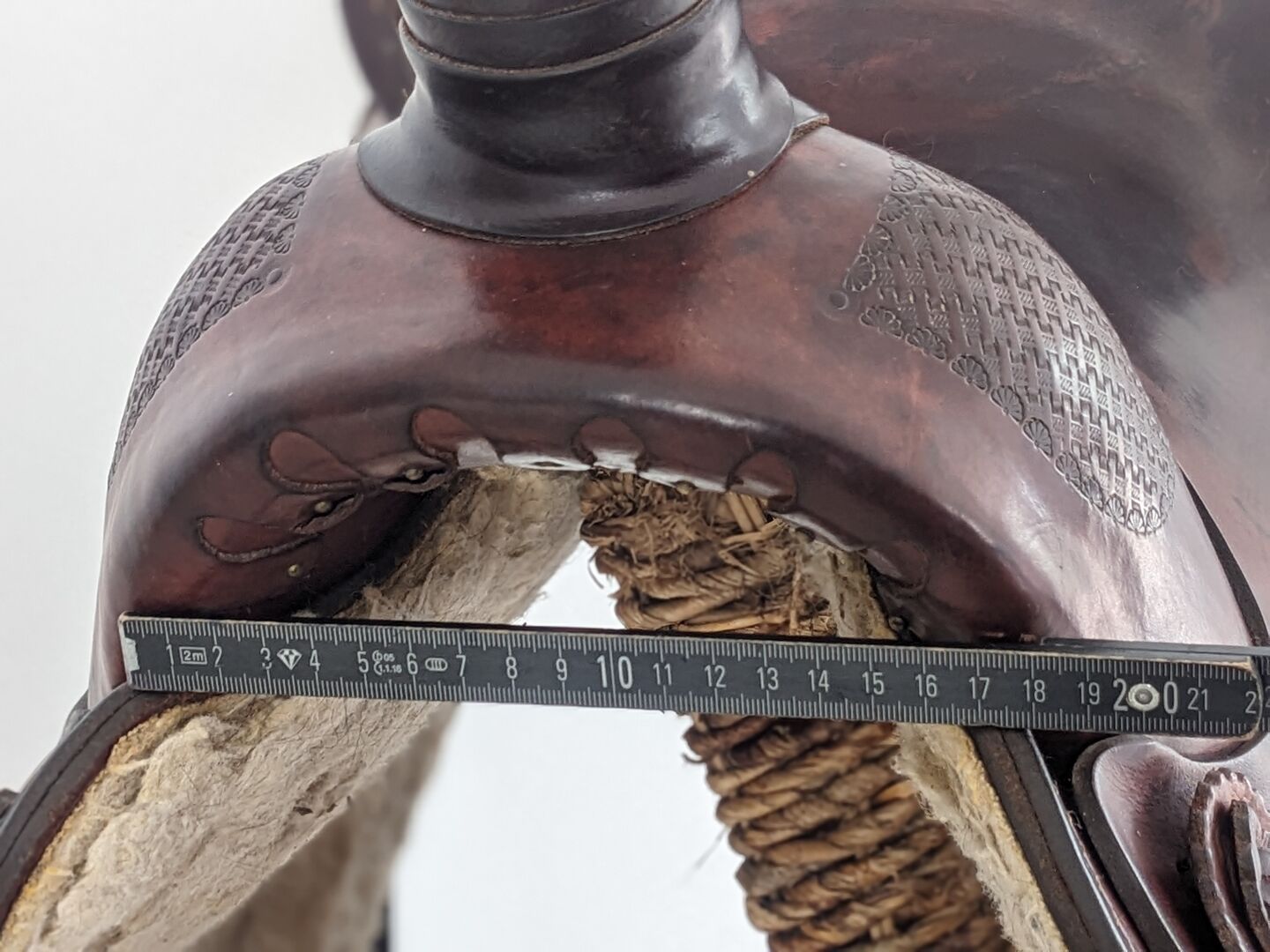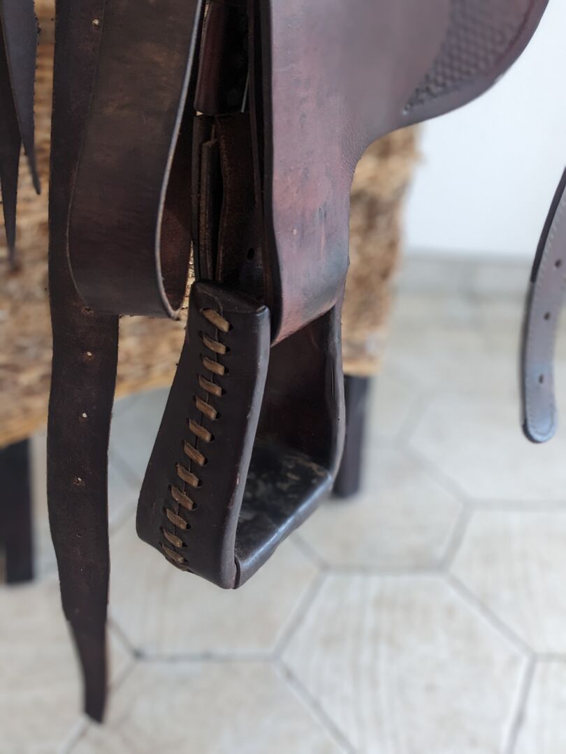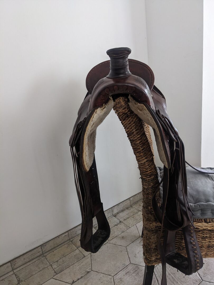 Dieser Sattel wurde liebevoll gepflegt und dürfte so um die 17 Zoll haben. Geeignet für große Reiter oder ideal für Männer. Getragen wurde der Sattel von einem Shagya-Araber ( breiter Arbeitsaraber) und ist geeignet für breite Pferde oder Kaltblüter. Verkauft wird er wegen einer neu Anschaffung die etwas kürzer ist und später auch auf den Jungspund Lusitano (kurzes Pferd) angepasst werden kann.