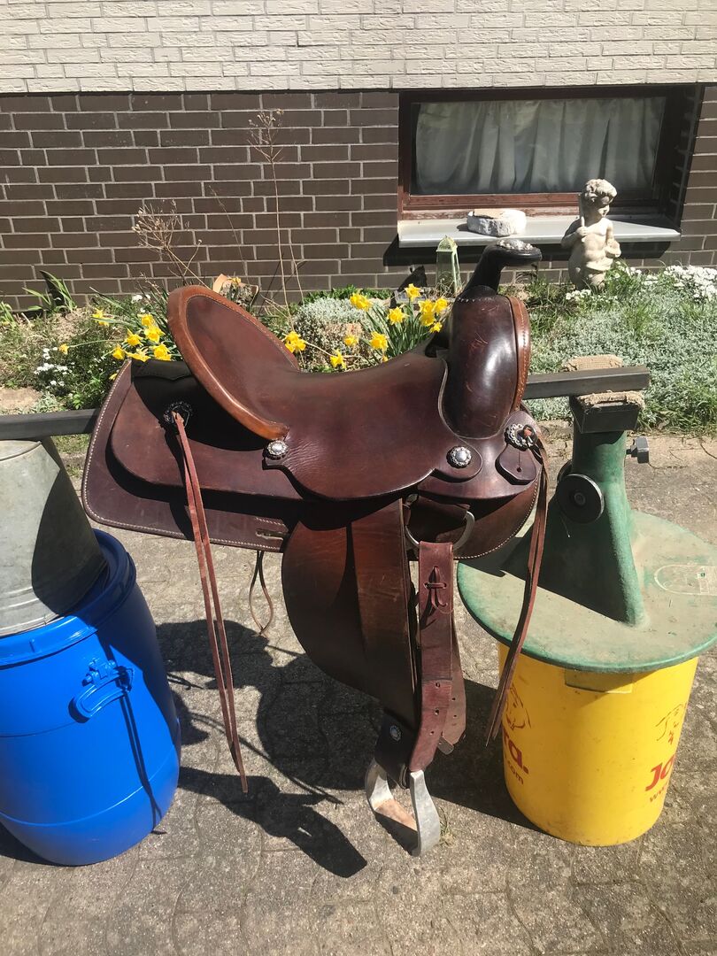 Sittplats i slätt läder, troligen en halv kvarts trä. Älskade den här sadeln, men tyvärr passar den inte min nuvarande häst och jag har ingen plats att förvara den på. Mått på begäran. Pris med latigo och offbillet, utan stigbyglar och grimma. Valfria graverade metallbyglar eller extra breda läderbyglar. Valfritt 3 olika bälten, var och en mot en extra kostnad Med undantag för inlösen och garanti enligt EU-lagstiftningen.