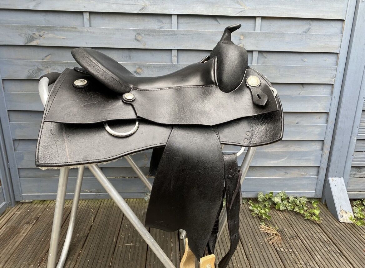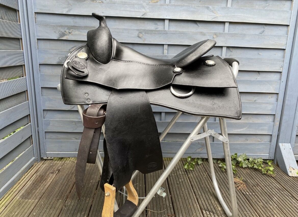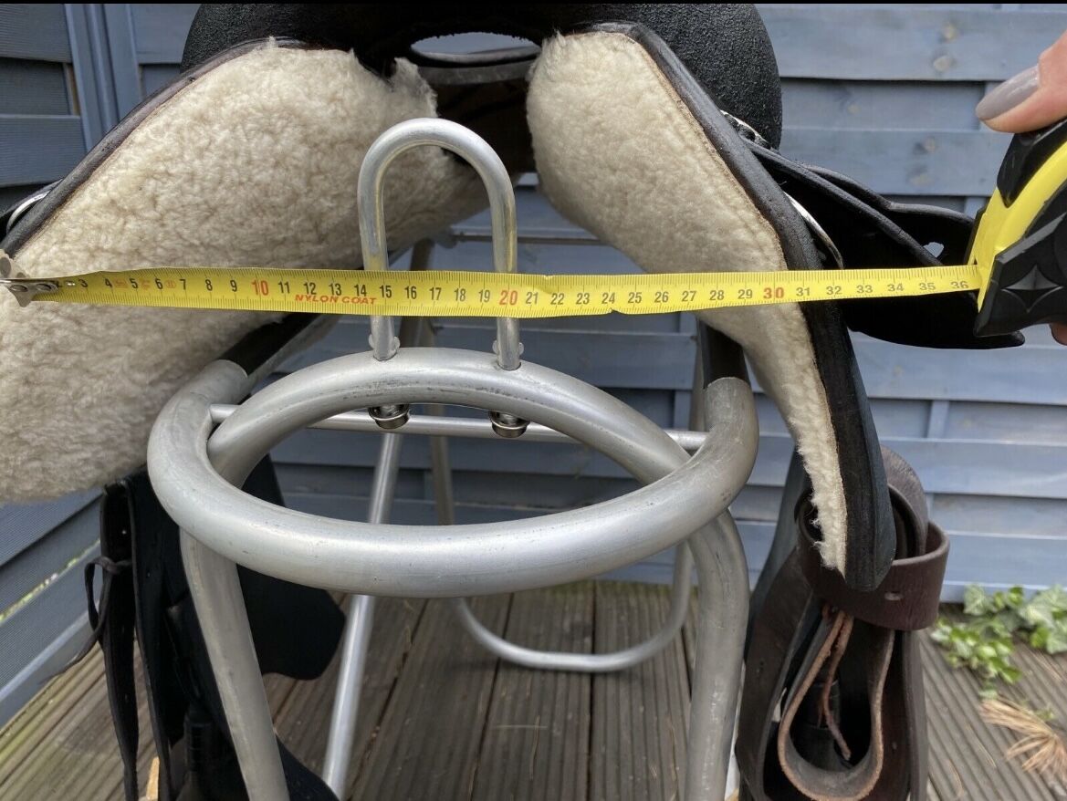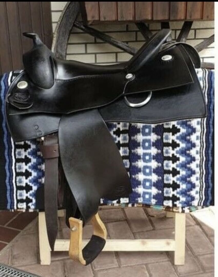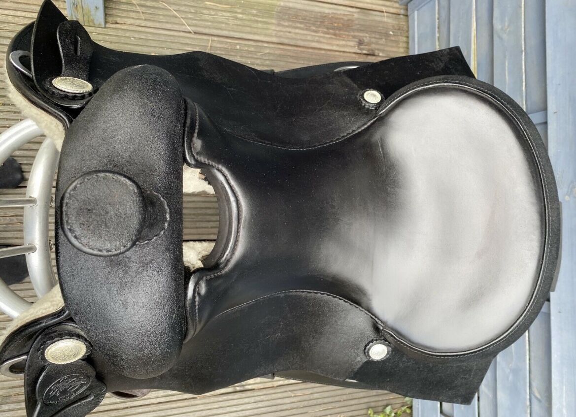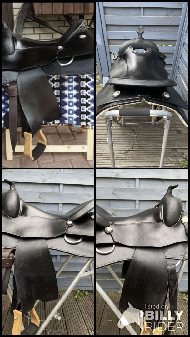 Den är från Kai Nehring. Du kan få sadeln anpassad till nästan vilken häst som helst. Jag hade det professionellt färgat svart, så det är som nytt. Den har inte använts sedan dess!