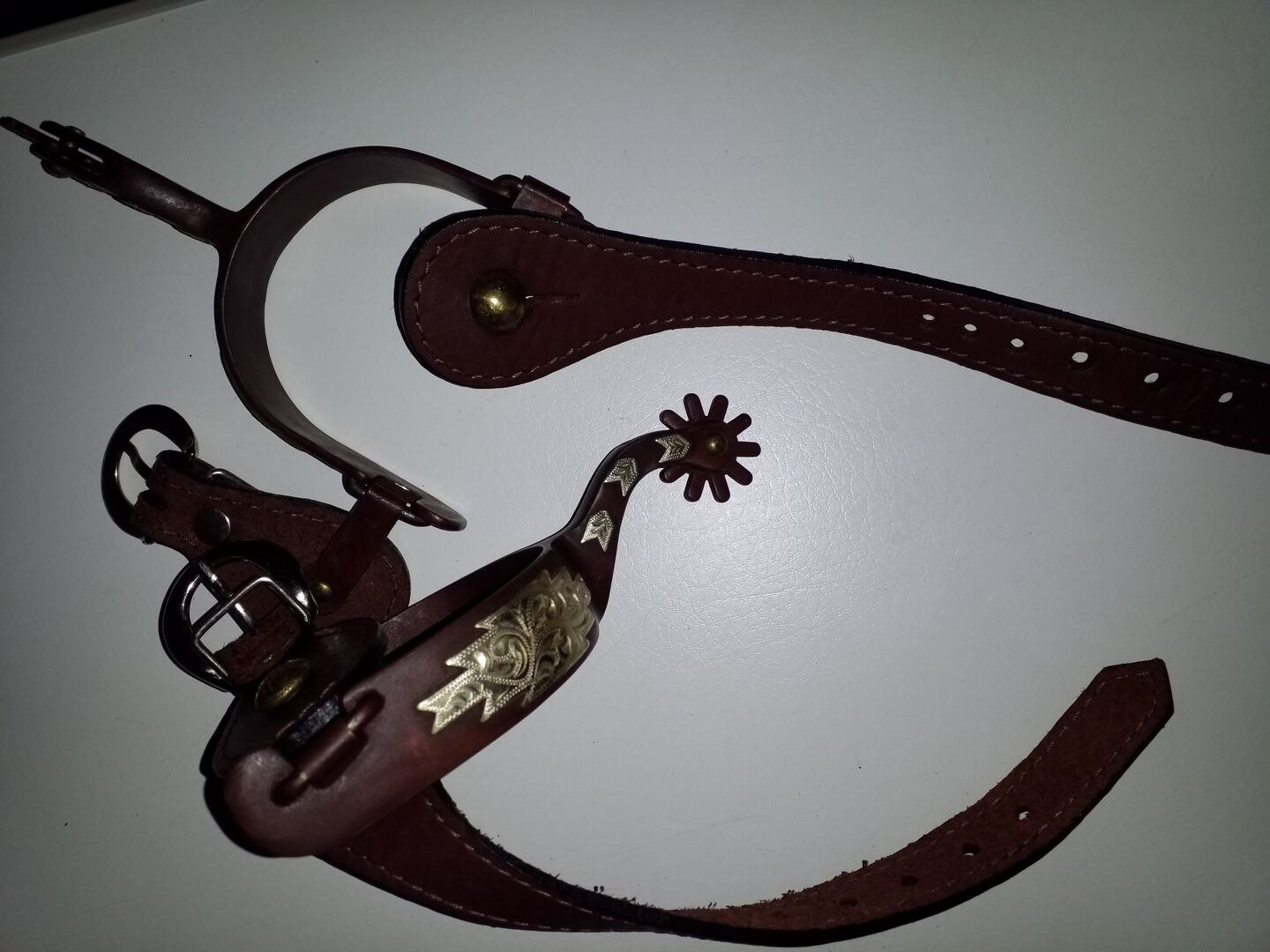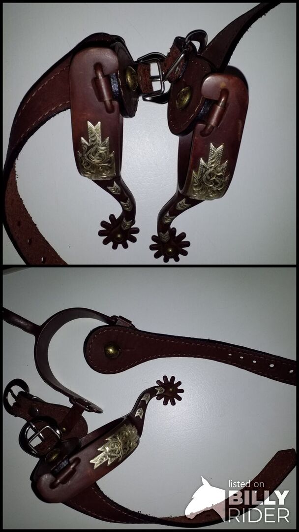 Westernsporre med rem - Mycket fina nya sporrar med dekoration inklusive sporremmar till salu. En riktig blickfångare !!!