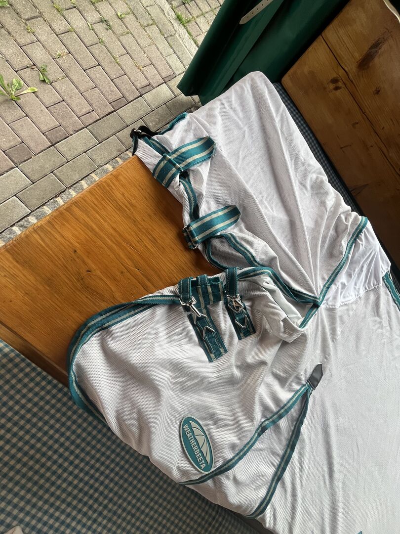 Wetherbeeta flugmatta 155cm ny - Täcket var endast 1x på hästen, nytvättat. Nytt pris 110€.