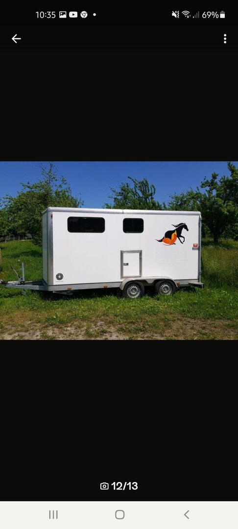 *Första registrering 2014 *Tomvikt 1400 kg *Total tillåten vikt 2700 *max. Dragstångslast 150kg *TÜV till december 2023 *Däck från 2022 *Fjädring med stötdämpare för en *hastighet upp till 100km/h *taklucka *sidofönster *Svängdörrar *Utdragbar ramp *Svängbar huvudvägg *Fönster på bakdörrar *Markis och förtält *Bädd *Tvättställ *Kylskåp *spis *Väggvärme *Trailern är registrerad och klar för omedelbar användning.
