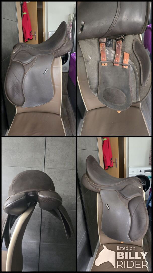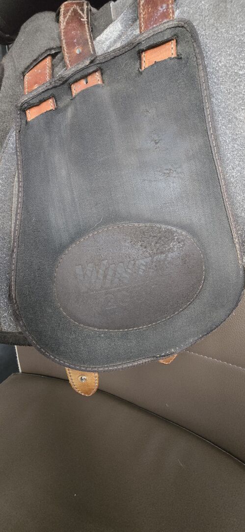 Wintec 2000 fälttävlanssadel med Cair i brunt - Jag säljer min Wintec 2000 fälttävlanssadel i brunt. Sadeln är utrustad med Cair (luftkuddesystem). Jag köpte den begagnad för flera år sedan. Den är i ett begagnat men mycket bra och välvårdat skick. Jag har bara använt sadeln för ridturer. Den är också utrustad med Easy Change-systemet för bygelplattor. För närvarande är den svarta kotlettplattan monterad.