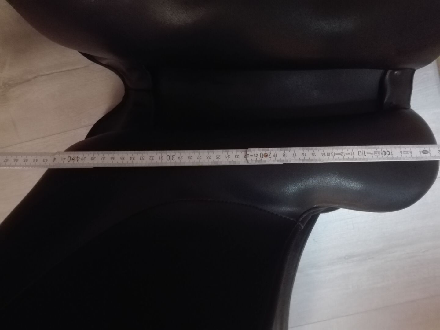 Sadeln har ingen cair och visar normala tecken på användning på svettluckan och panelerna.
