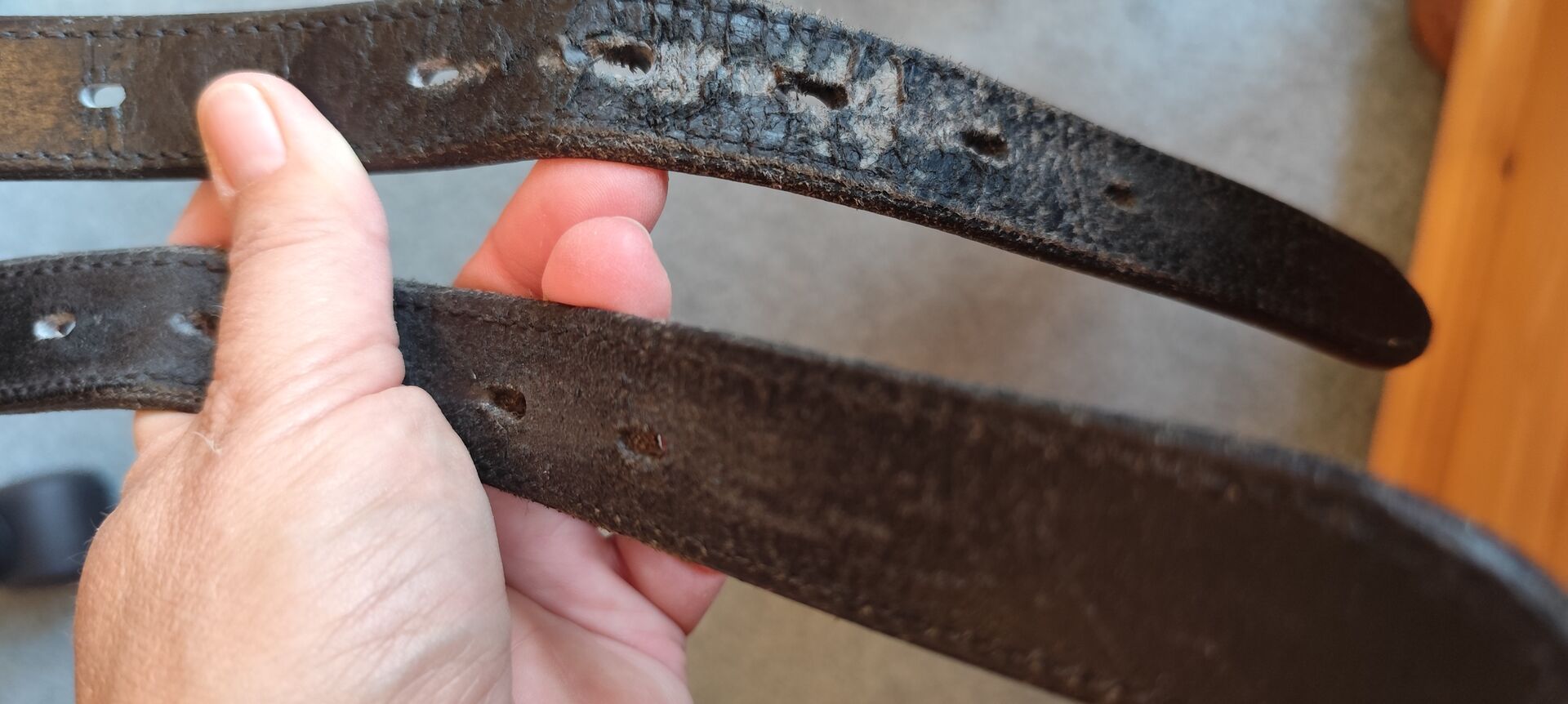 Användes senast i kombination med ett lammskinn på en 170 cm Oldenburg med hög mankhöjd. I det här fallet var det nödvändigt att välja en så bred gaffelplatta (blå) att den inte skulle sitta för hårt med lammskinnet, men samtidigt var det nödvändigt att bibehålla tillräckligt avstånd till manken!