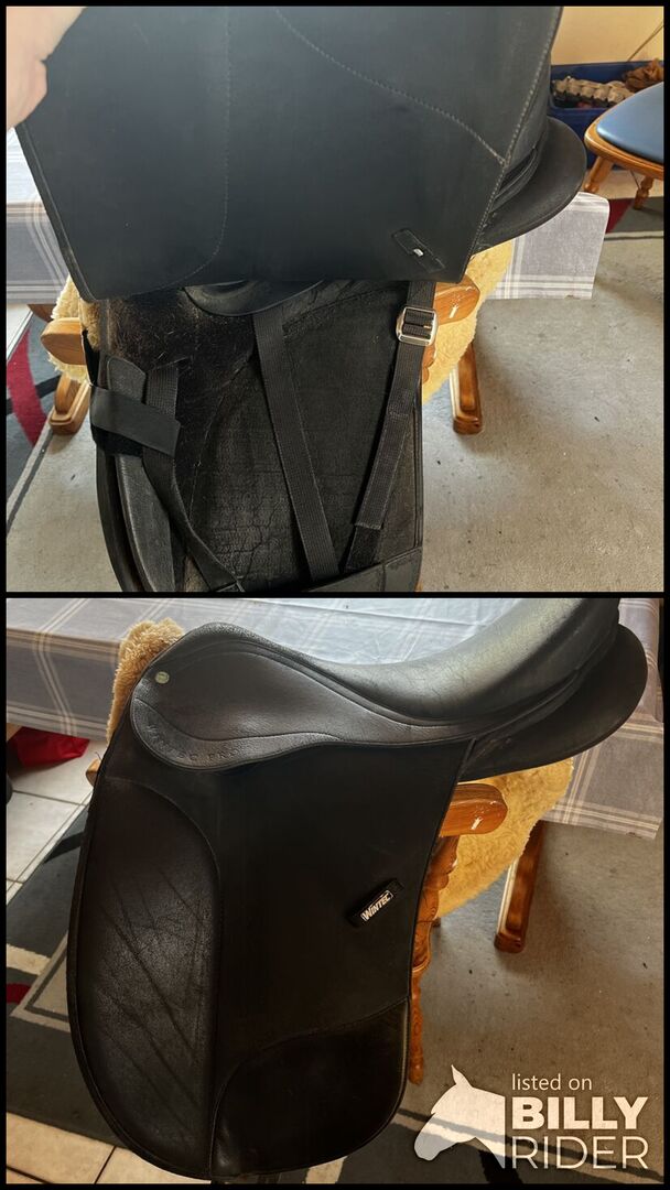 Wintec dressyrsadel 16,5 tum, kort sadelgjord, träns (VB) - Hej, jag erbjuder härmed min Wintec dressyrsadel. Sadeln är i gott skick och har bara en repa på den bakre pallen. Det påverkar inte användningen av sadeln. Gulletremmarna byttes ut för 2 år sedan. Jag skulle också inkludera en sadeldyna. Jag har också en 62 cm kort sadelgjord och en fullblods snäppa till salu. För alla tillsammans skulle jag vilja ha 250 €. De kan dock också köpas individuellt