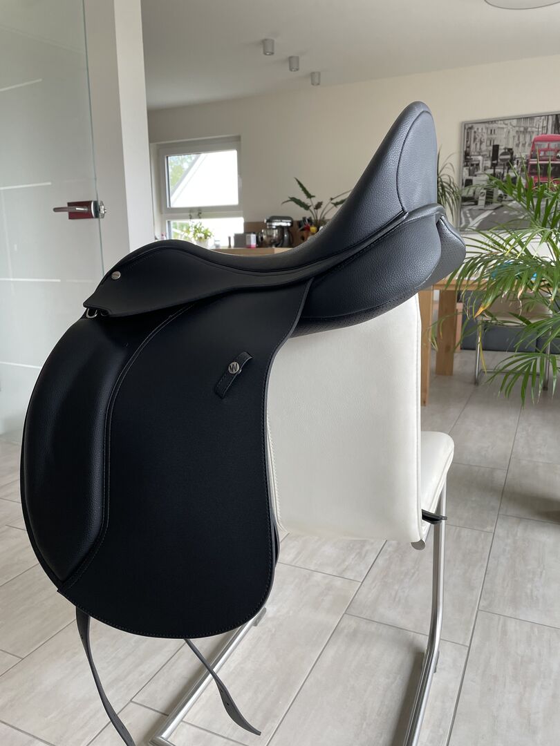 Sadeln är helt ny (byggd 2021). Tyvärr är det inte möjligt att anpassa den till min häst. Jag kommer att inkludera sadelduken, och jag har också beställt en grön mattaplatta (normalt smal) som kan läggas till. Den svarta mattaplattan (normal) är för närvarande monterad.