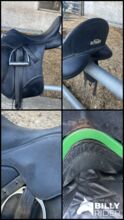 Sadeln är helt intakt och säljs eftersom den är för stor för min häst. Det enda felet jag känner till är att det saknas en etikett på stigbygelfliken till vänster, men det är inte funktionellt relevant.
