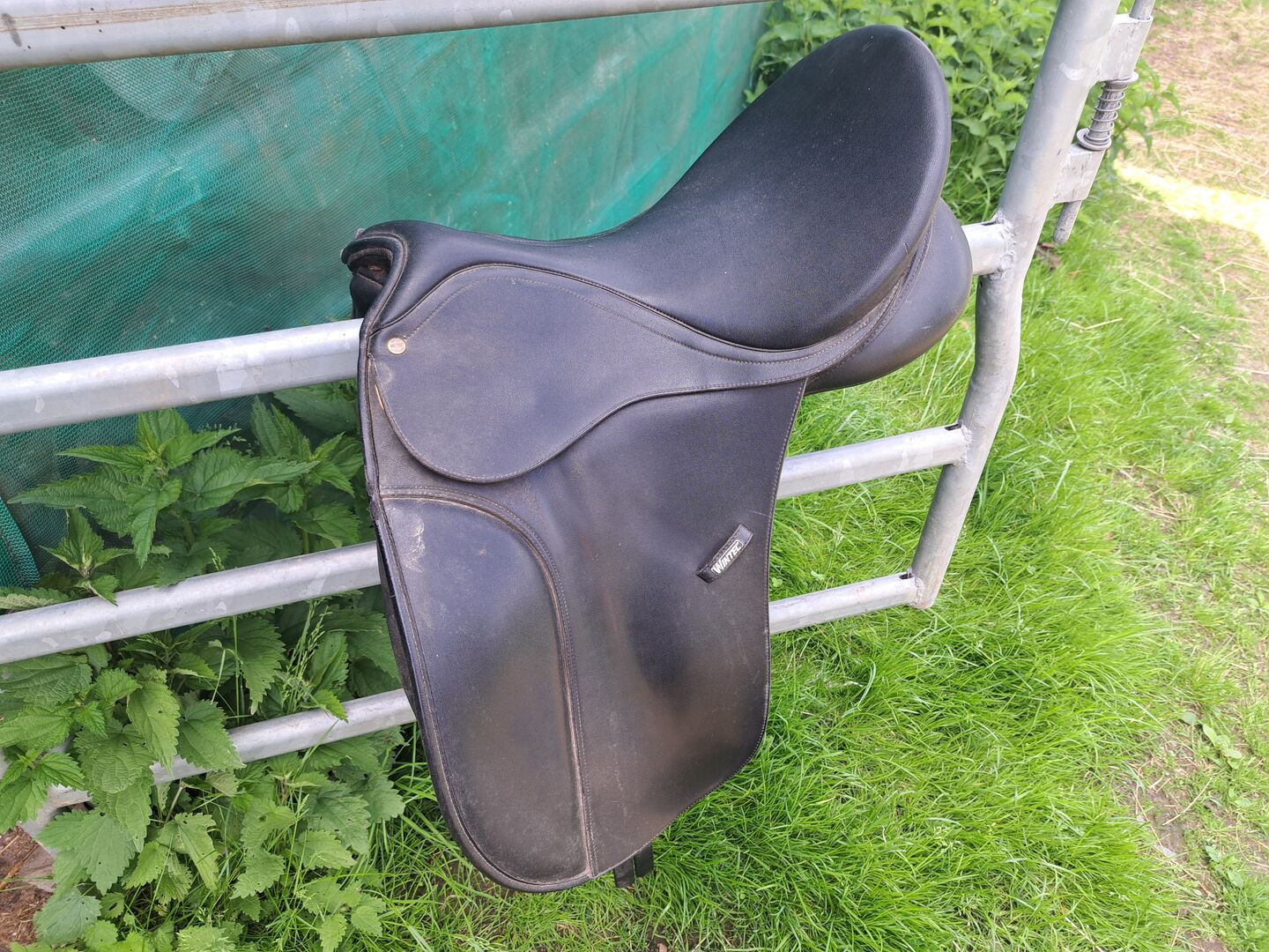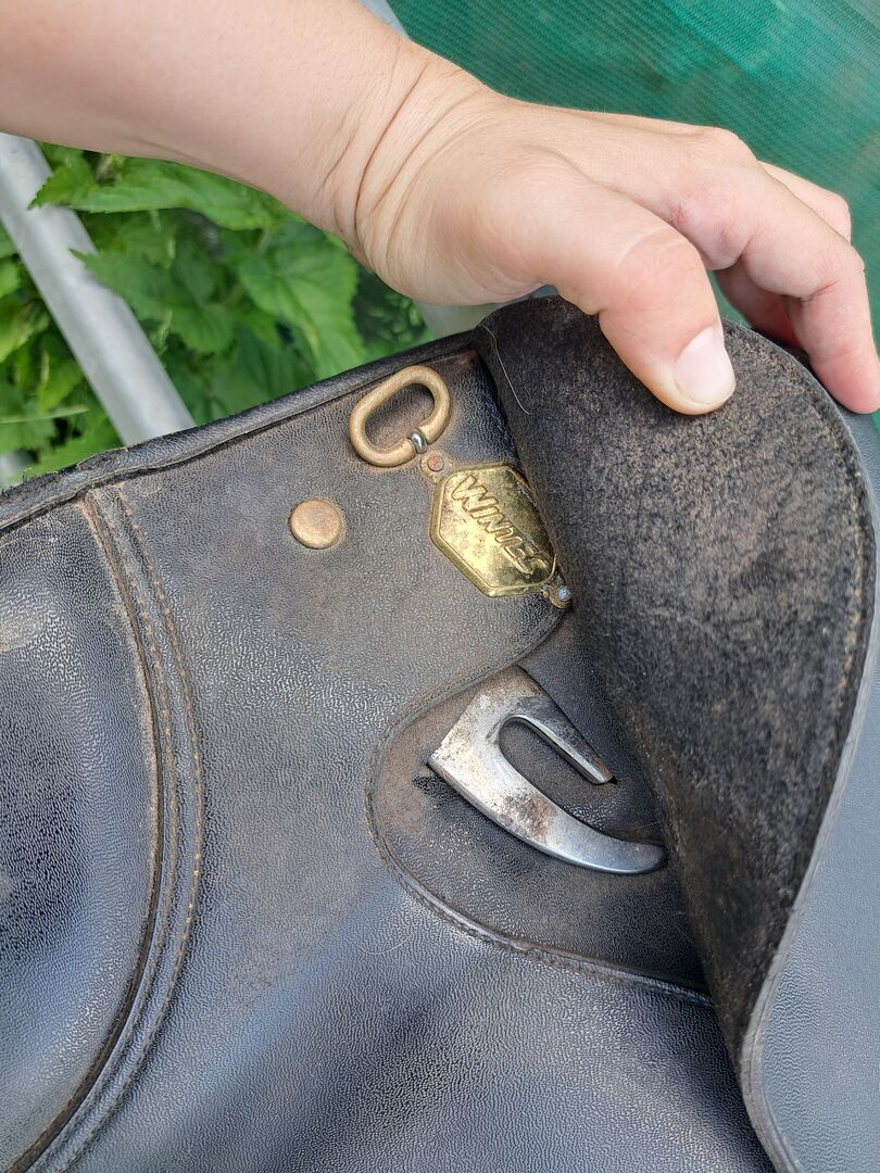 Wintec dressyrsadel med Cair - Sadeln är i gott skick och mycket bekväm. Den är utrustad med Cair-systemet. Sadelgjordsbanden på ena sidan behöver dock troligen bytas ut. De är för närvarande fortfarande funktionella, jag har förseglat dem med lite lim.