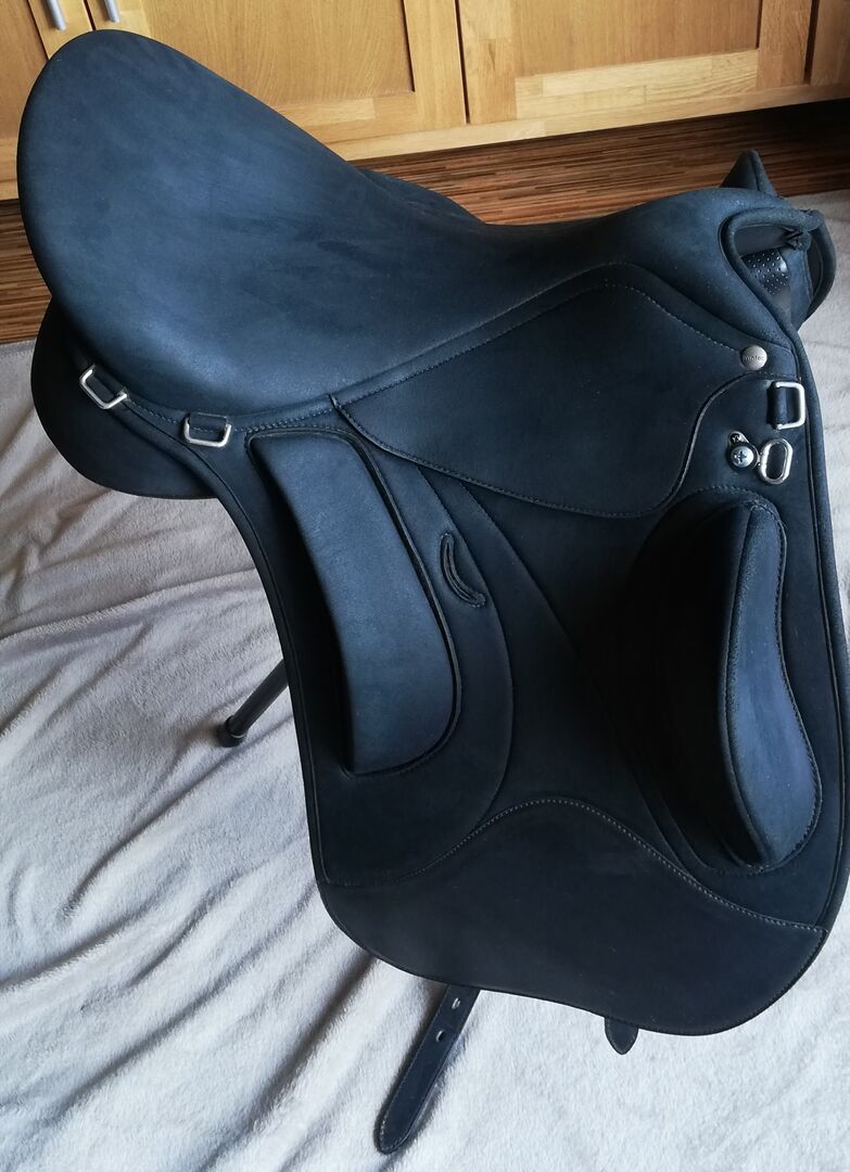 Jag har fortfarande måsar i blått och rött. Wintec Pro Endurance ger ett sensationellt grepp tack vare pommlarna och ringarna gör det enkelt att spänna fast sadelväskor. Lämplig för långa ridturer och för arbete i arenan.