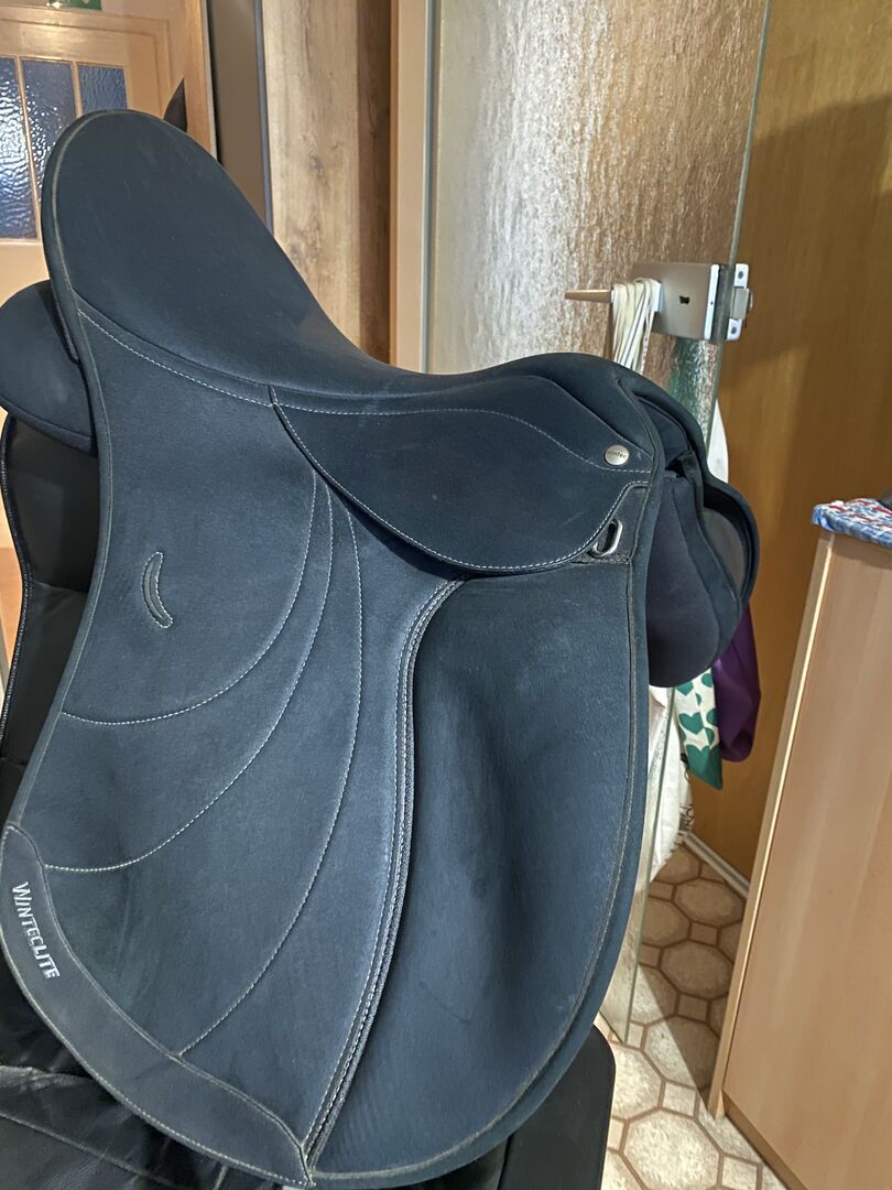 Sadeln är tillverkad av ett mocka-liknande material och är mycket lätt. Den är mycket bekväm för häst och ryttare‼️. Sadeln har integrerade luftkuddar som fördelar ryttarens vikt bättre än konventionella sadlar. ✨ Det är mycket lätt att byta ut sadelplattan. Det innebär att du själv kan justera bredden på matstrupen. Den vita mattaplattan (mattabredd 33/34) sitter för närvarande i sadeln. En svart mattaplatta (matta bredd 30) ingår också.
