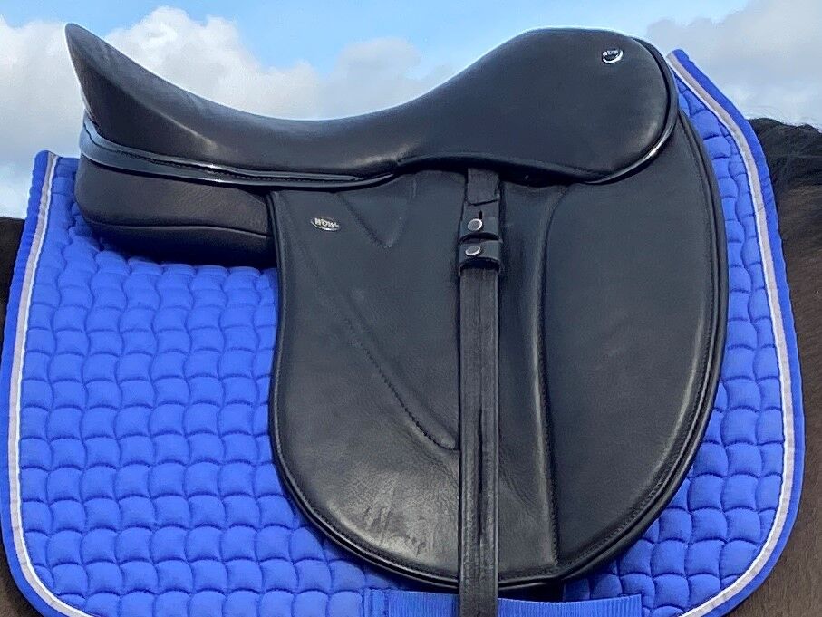 WOW Saddle Dressage - 17 tums standardsits, böjd, dressyrklaff med kardborreband, kort klaff. Modulärt sadelsystem, med flair-system. Ridit bara några få gånger, med faktura från 09/20, NP 3.700 €.