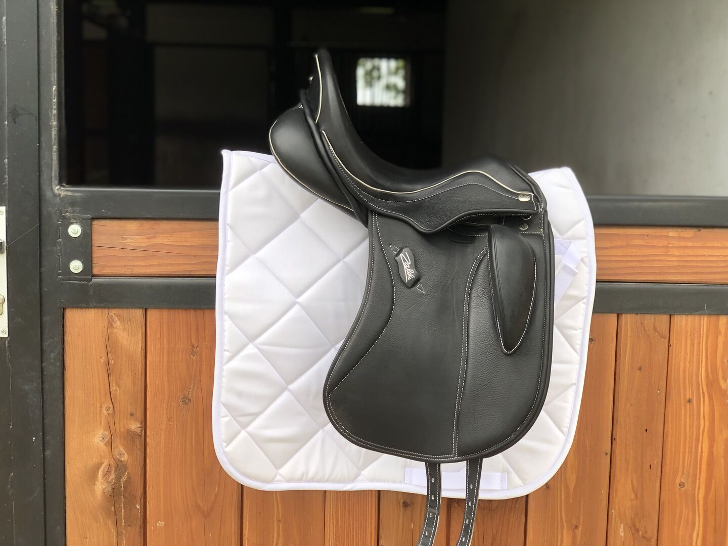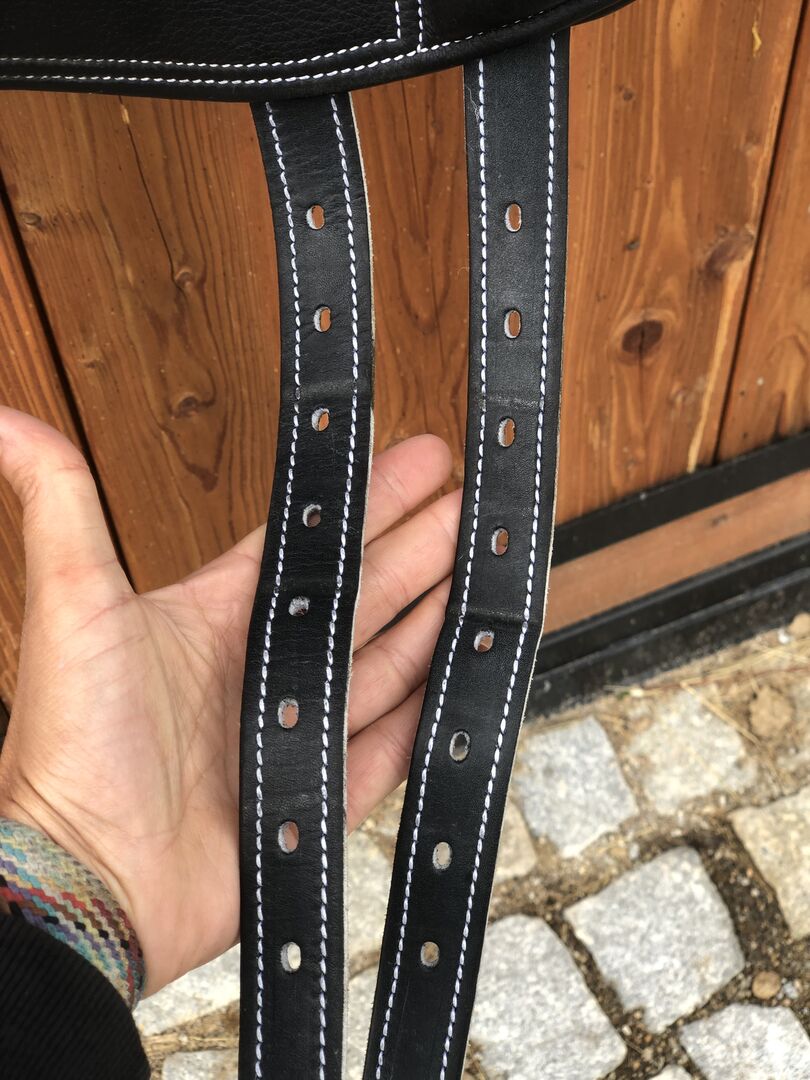 Dressyrsadel från spanska märket Zaldi, modell San Jorge. Sattelgröße 17", Kammer 36 Der Sattel ist aus hochwertigem Leder gefertigt, mit weißen Nähten genäht. Kniestötar med TM-system eller klassiskt. Stängerna är oöverträffade och instabila i förhållande till Reiters behov. Det erbjuder en djup sittplats, som stöder. Även lämplig för kortare hästar. Används på ett rött hästdjur utan Widerrist. Wärmeverstellbare Kammer. Sattel wurde minimal geritten, daher in neuem Zustand. Leverans möjlig.