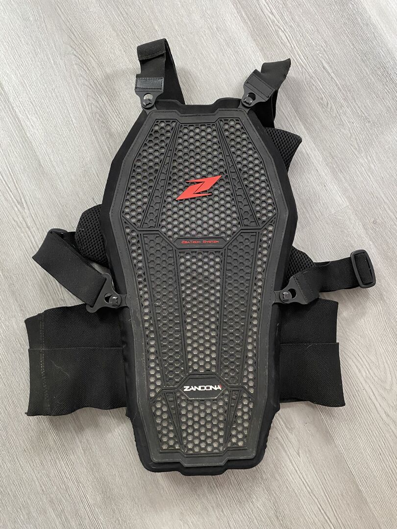 Zandona bröst- och ryggskydd - Ridpansaret är tillverkat av ett svettabsorberande material. Den yttre plattan är en sexkantig nitrilstruktur (Esatech-systemet) som är speciellt utvecklad för att absorbera höga stötenergier och fördela energin över hela skyddsytan.