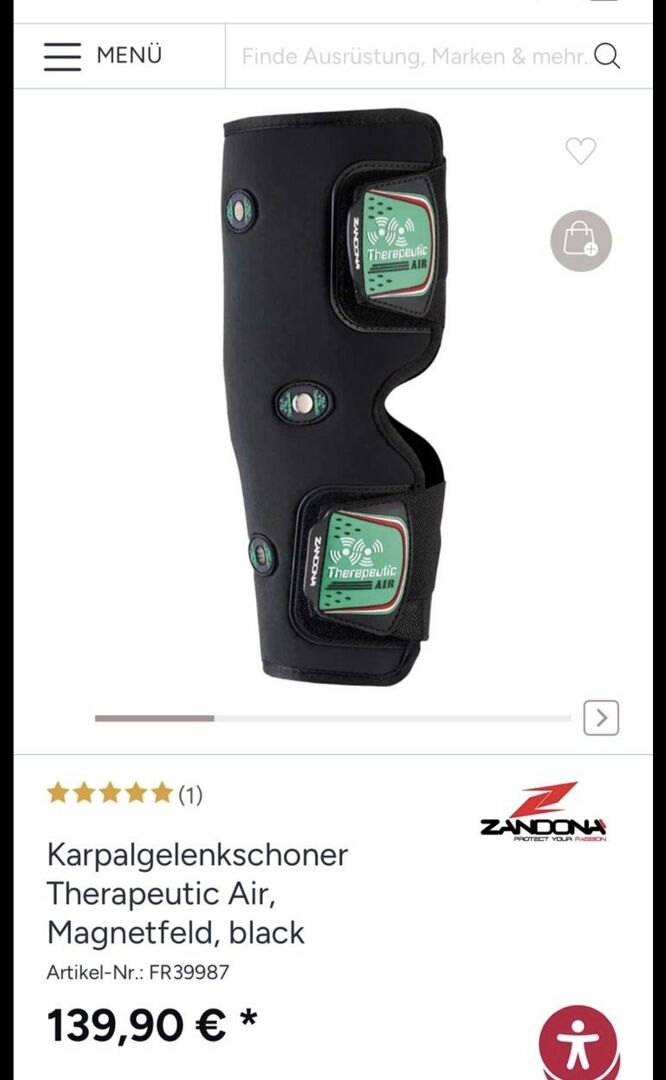 Zandona Therapeutic Air magnetiska fält damasker karpalledsskydd ny storlek S - Zandona Therapeutic Air karpalledsskydd storlek S, nya och i OVP, eftersom de tyvärr inte längre kunde användas NP 139,90 €.