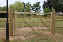 Vår trädgårdsträdgård Tor "London" kan genom sin robusta utstrålning fungera lika mycket som Begrenzung am Hof och som Koppelgatter. I kombination med en av våra autentiska Zäune är den totala bilden komplett.